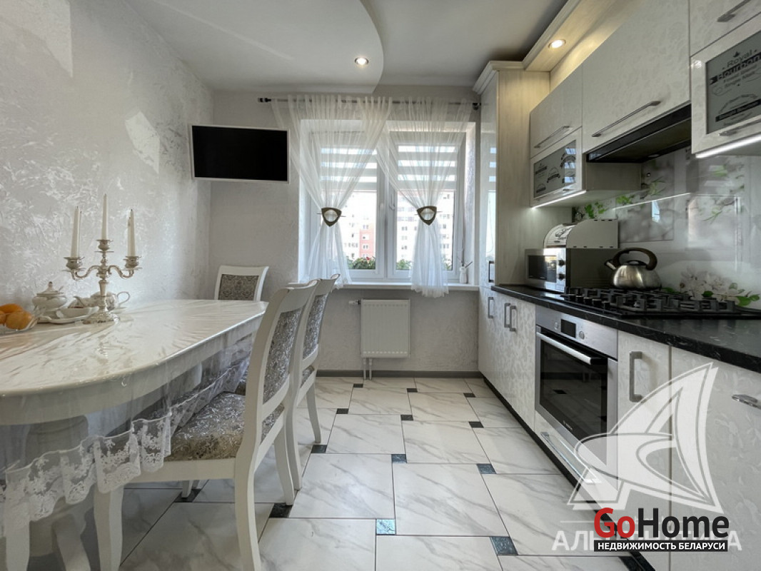 3-комнатная квартира, г. Брест, ул. Махновича, 2016 г.п., 4 / 10 панель, 79,9 / 76,7 / 47,2 / 10,5, санузел раздельный, лоджия, стеклопакеты, межкомнатные двери - экошпон, входная дверь металлическая, многоуровневые потолки - натяжные (в санузле, в коридоре) из гипсокартона и с разноплановой системой освещения, полы - плитка (в кухне, в прихожей) и ламинат (положены на стяжку), стены - фактурная штукатурка (в коридоре, в кухне, на лоджии) и оклеены обоями, в санузле современная плитка, акриловая ванна, домофон, система видеонаблюдения. Кухонный гарнитур, варочная поверхность, духовой шкаф, вытяжка Cata, посудомоечная машина BOSCH, три шкафа-купе (в детской, в спальне, в коридоре), остальная мебель по договоренности. Квартира с хорошим ремонтом. Один грузопассажирский лифт. Тамбур на две квартиры. Дом оборудован пандусом. Во дворе игровая детская площадка, парковка для автомобилей. Лот - 240786
