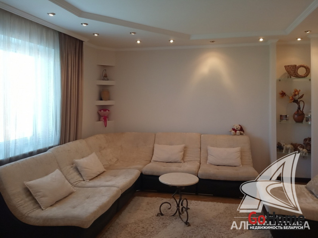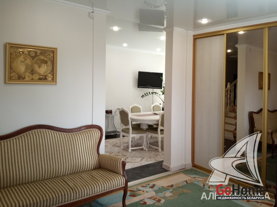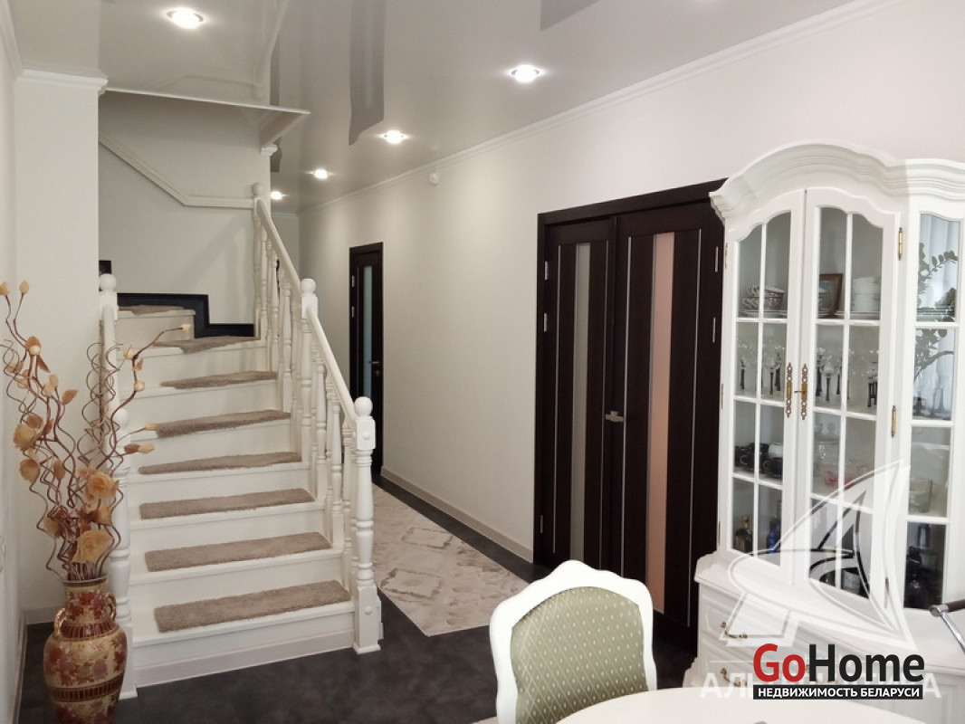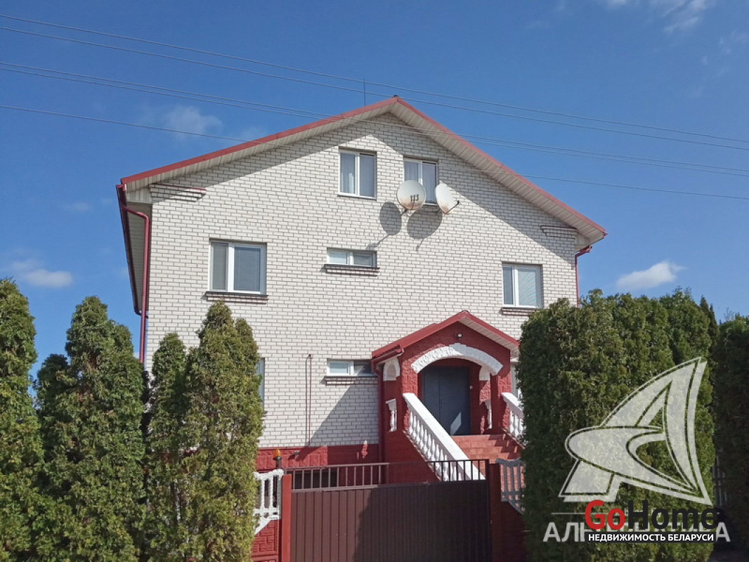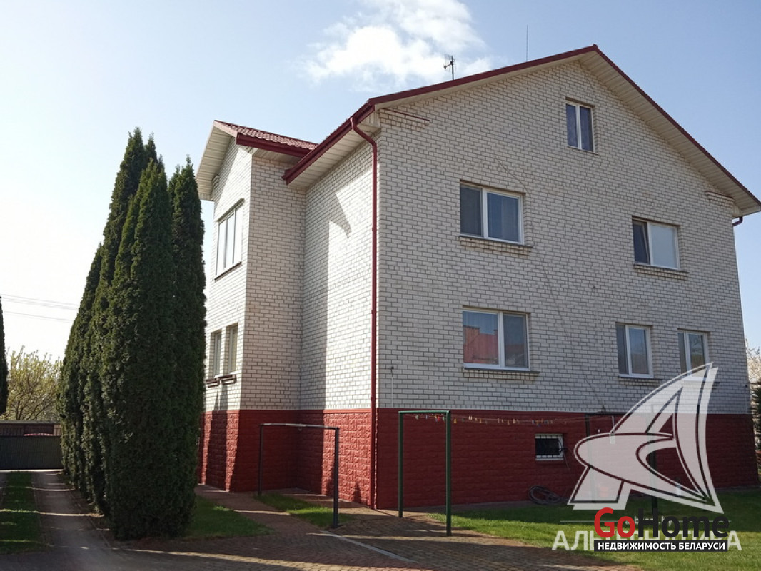 Жилой дом в г.Бресте. 2000 г.п. 2 этажа, цокольный этаж. Общ.СНБ - 323,5 кв.м, общ.- 199,3 кв.м, жил.- 110,6 кв.м, кух.- 14,7 кв.м. 5 комнат, высота потолка - 2,8 м.