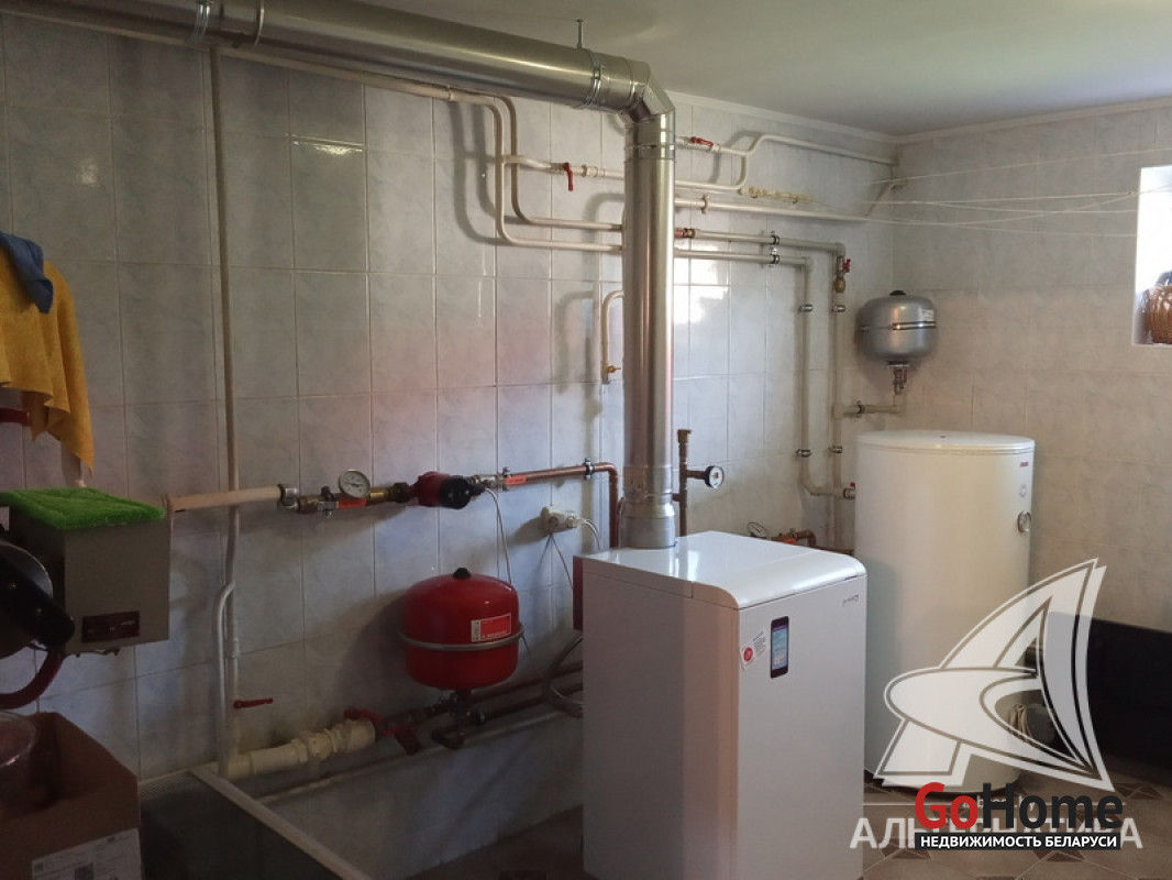 Коммуникации: отопление - газовый котел, газ - централизованный, водоснабжение - централизованное, скважина и гидрофор, электричество - централизованное, канализация - централизованное.
