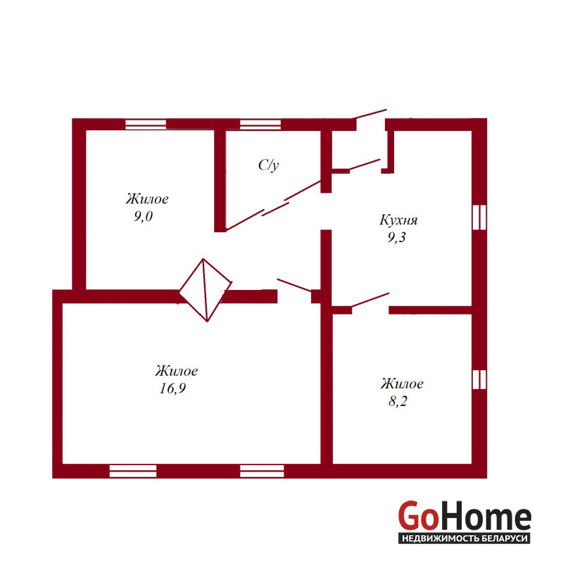 Квартира из двух отапливаемых комнат, кухня, и комната без отопления. В санузле есть душевой уголок, унитаз, умывальник.