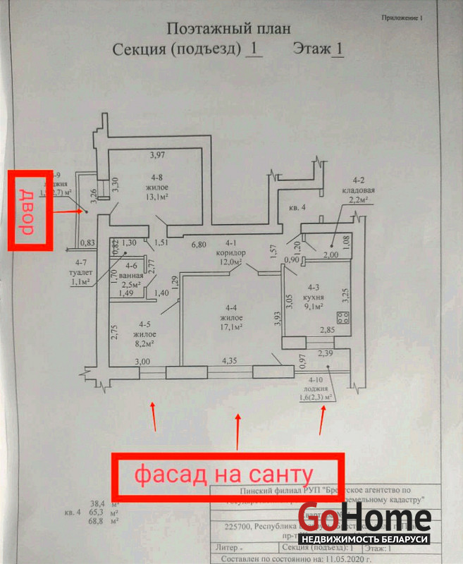 Продаётся 3х комнатная квартира 68,8кв.м. г.Пинск проспект Жолтовского 11.