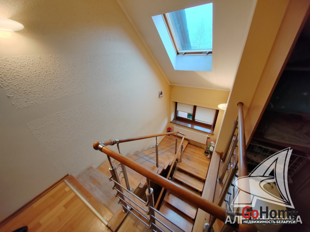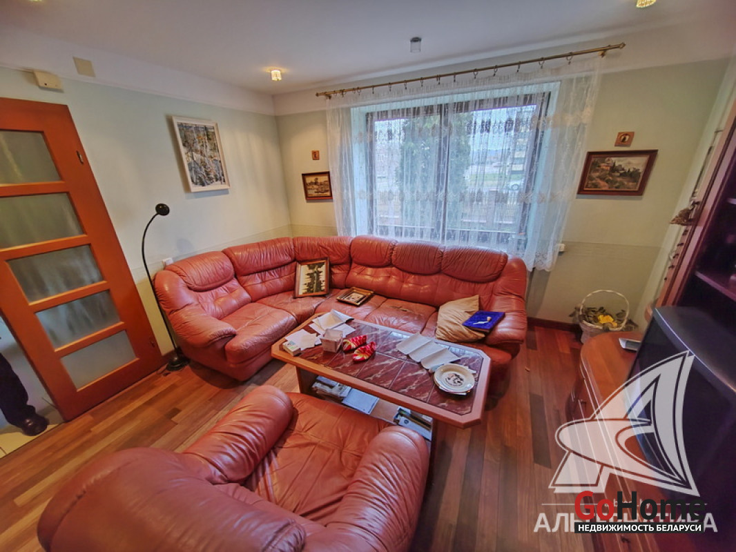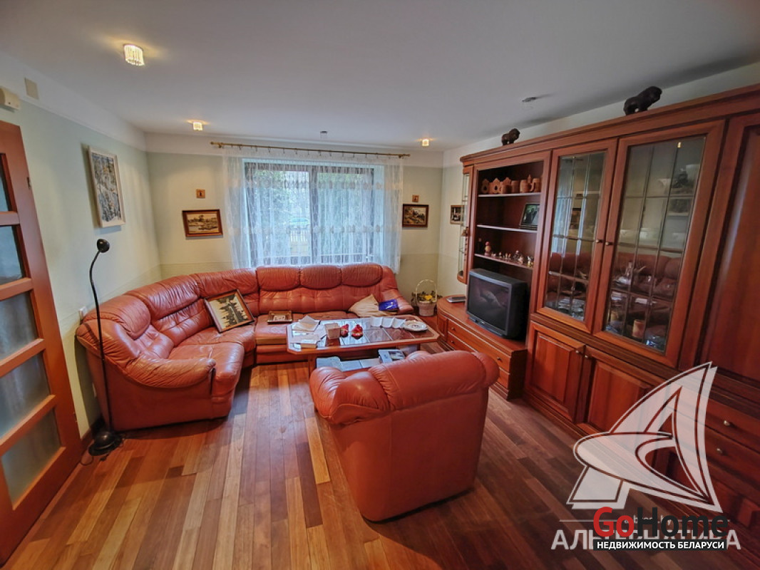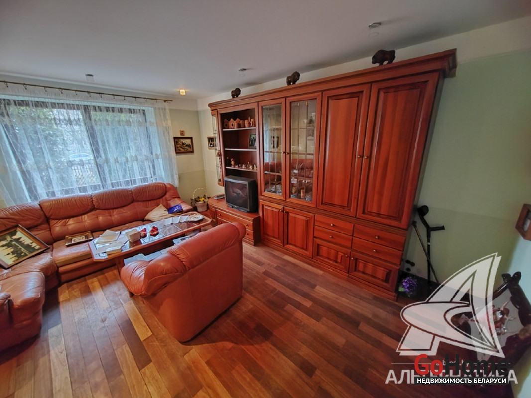 Квартира в блокированном жилом доме в Брестском р-не. 1 этаж, мансарда. Общ.СНБ - 148,5 кв.м, общ.- 128,6 кв.м, жил.- 75,6 кв.м, кух.- 13,2 кв.м. 4 комнаты, высота потолка - 2,60 м.