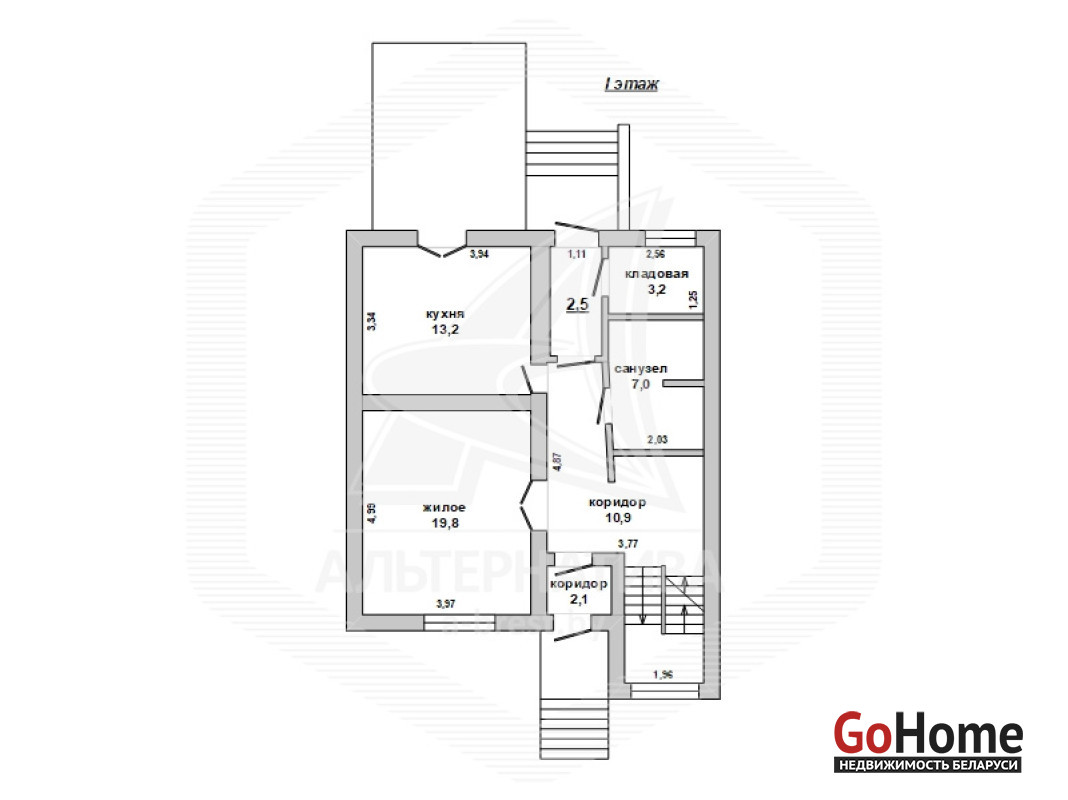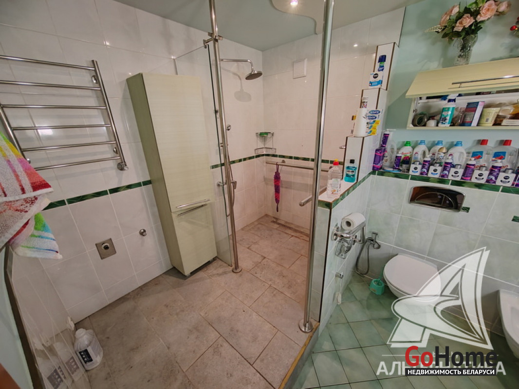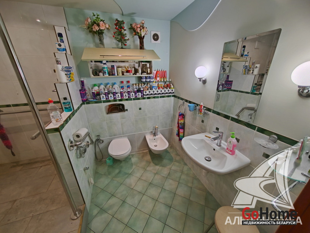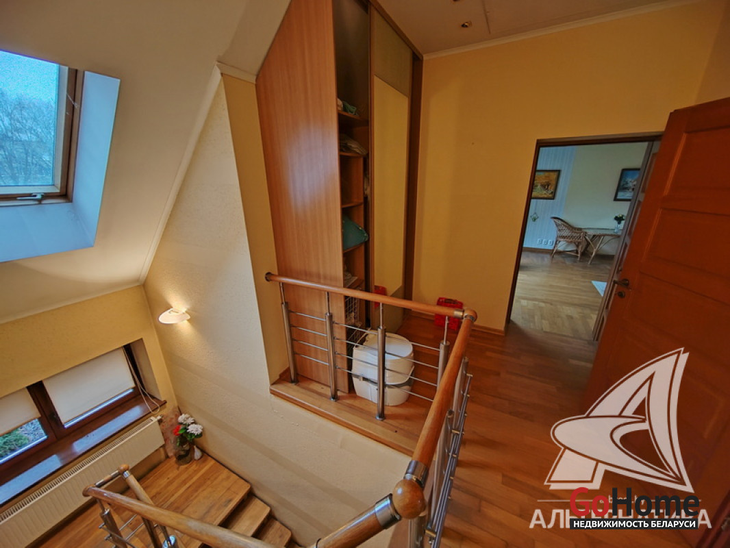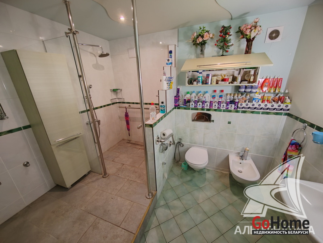 Квартира в блокированном жилом доме в Брестском р-не. 1 этаж, мансарда. Общ.СНБ - 148,5 кв.м, общ.- 128,6 кв.м, жил.- 75,6 кв.м, кух.- 13,2 кв.м. 4 комнаты, высота потолка - 2,60 м.