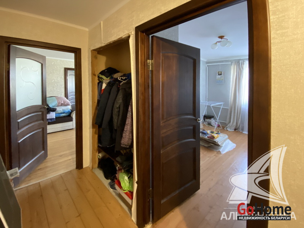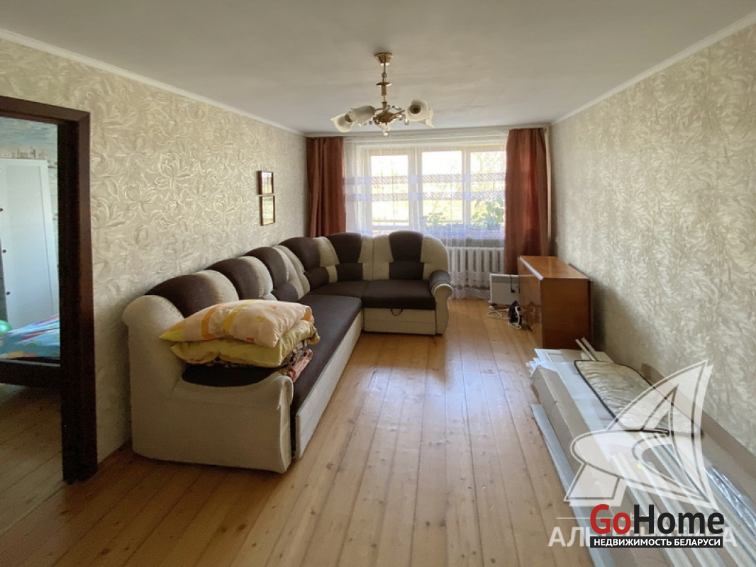 3-комнатная квартира, аг. Пелище, ул. Первомайская, 1965 г.п., 3 / 3 кирпич, 56,0 / 55,3 / 36,8 / 5,7, санузел совмещенный, балкон, деревянные стеклопакеты, межкомнатные двери - массив, входная дверь металлическая, потолки - снежка (2,50 м), полы - доска, стены - декоративная штукатурка (в кухне) и оклеены обоями, в санузле современная плитка, заменена сантехника, заменены сантехнические трубы (пластик), ванна, установлен бойлер, частично проведена новая электропроводка, телефон. Мебель по договоренности. Квартира с хорошим ремонтом. Окна выходят на зеленую зону. Чистый подъезд. Есть технический этаж. Двускатная крыша. Во дворе игровая детская площадка, парковка для автомобилей. Лот - 240922
