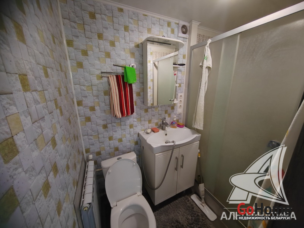 Квартира в блокированном жилом доме в г.Бресте. 1930 г.п. 1 этаж. Общ.СНБ - 31,3 кв.м, общ.- 31,3 кв.м, жил.- 12,9 кв.м, кух.- 8,3 кв.м. 1 комната, высота потолка - 2,7 м.