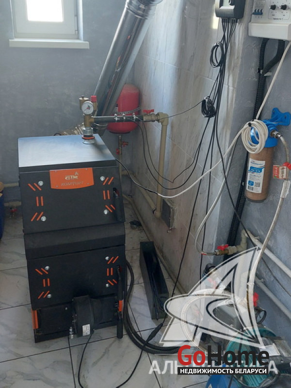 Коммуникации: отопление - электрический котел и котел на твердом топливе, водоснабжение - скважина и гидрофор.