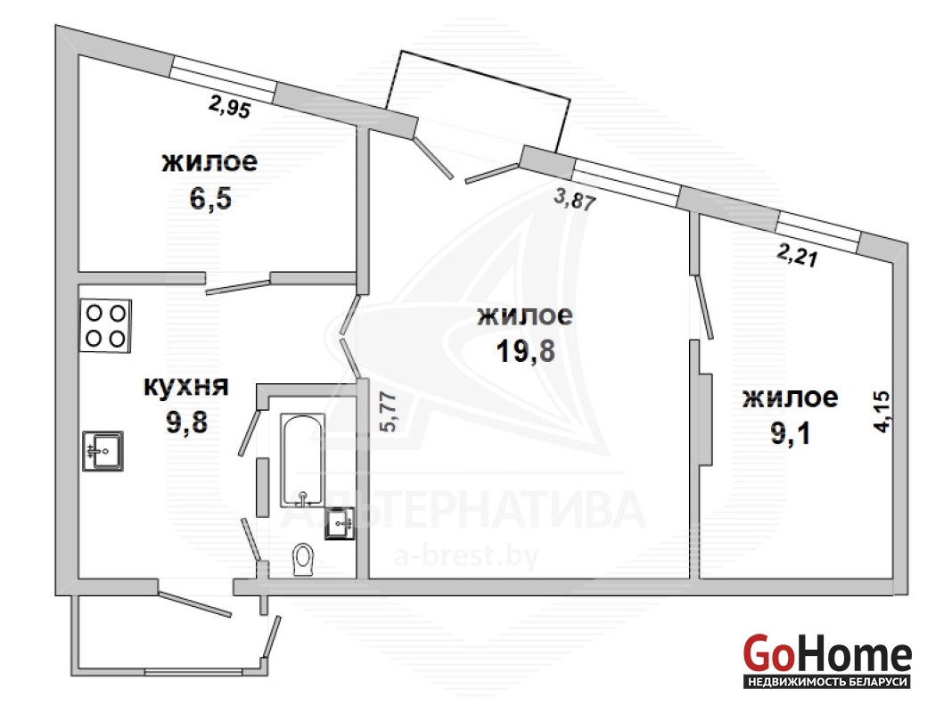 3-комнатная квартира, г. Брест, ул. Советская, 1928 г.п., 2 / 3 кирпич, 47,7 / 47,2 / 35,4 / 9,8, санузел совмещенный, подвал, балкон не застеклен, потолки - 3,05 м, полы - деревянные, новая плитка и сантехника, стеклопакеты, телефон. Встроенный кухонный гарнитур. Квартира в жилом состоянии. Лот - 160132
