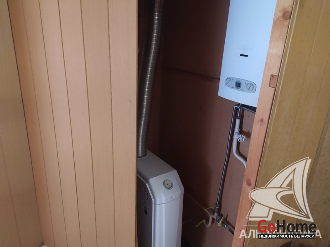 Коммуникации: отопление - газовый котел, газ - централизованный (в доме), водоснабжение - централизованный водопровод, электричество - централизованное, канализация - централизованная.
