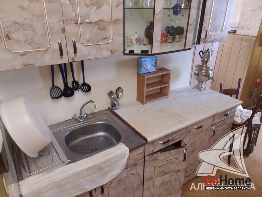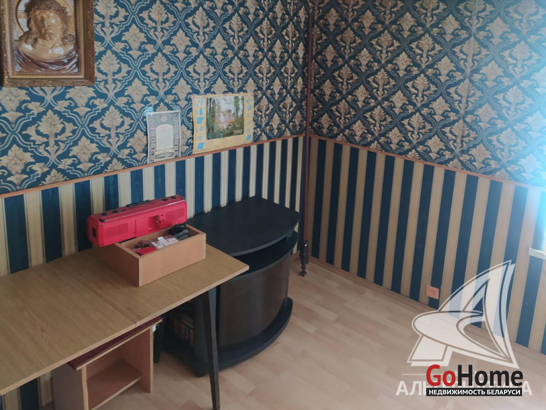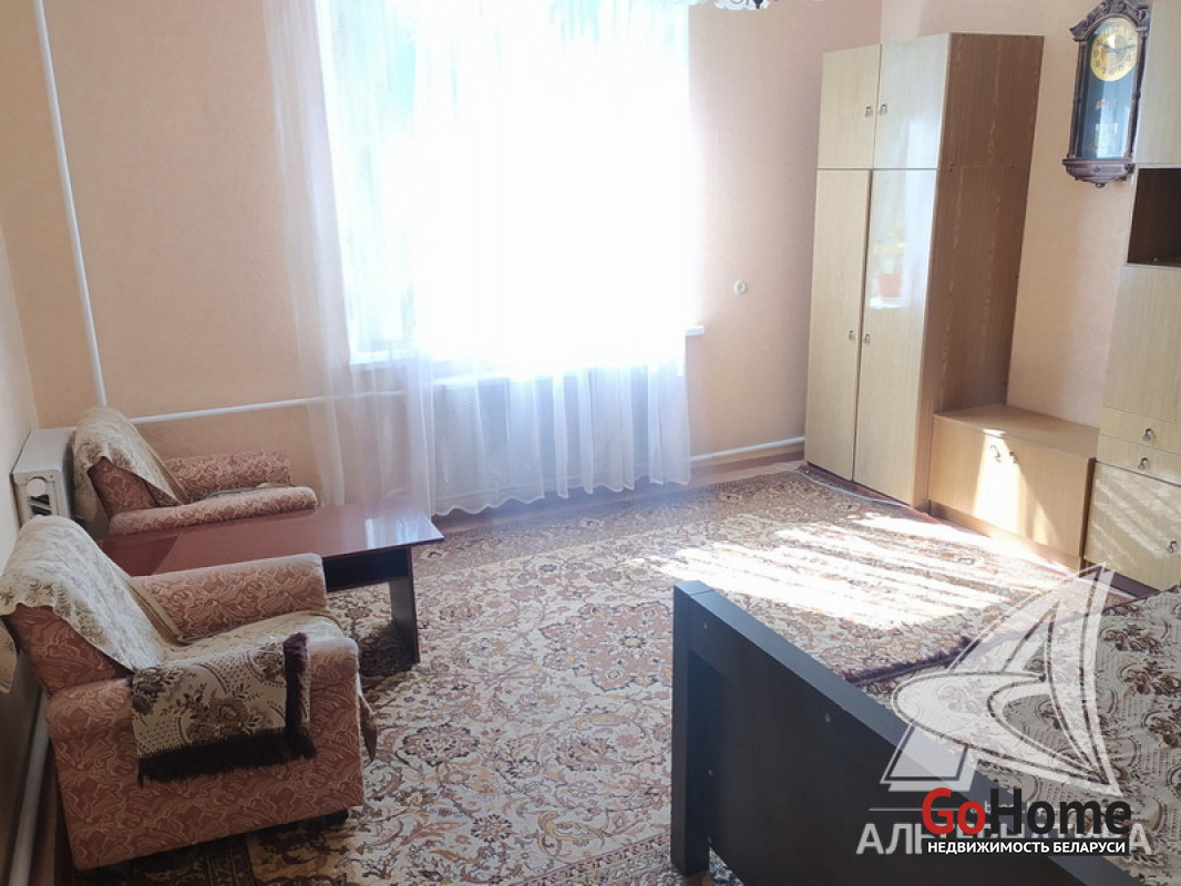 Квартира в блокированном жилом доме в г.Бресте. 1936 г.п. 1 этаж. Общ.СНБ - 86,1 кв.м, общ.- 81,9 кв.м, жил.- 55,7 кв.м, кух.- 12,4 кв.м. 4 комнаты, высота потолка - 2,70 м.