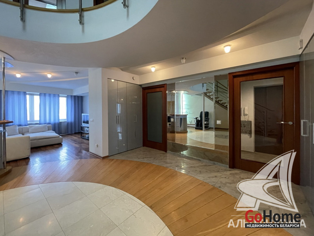 3-комнатная квартира, г. Брест, ул. Халтурина, 2003 г.п., 8*9 / 9 кирпич, 188,7 / 182,1 / 45,5 / 98,9, два санузла, лоджия застеклена, стеклопакеты - ПВХ (на лоджии) и деревянные, межкомнатные двери - массив, многоуровневые потолки из гипсокартона с разноплановой системой освещения (2,70 м), полы - паркет и плитка (положены на стяжку), есть подогрев пола (в санузле), стены - венецианская штукатурка (в спальне) и декоративная окраска, акриловая ванна (джакузи), душевая кабина, инсталляция villeroyboch, действующий камин, домофон. Квартира с индивидуальными дизайнерскими решениями. Квартира находится под охраной. Чистый подъезд. Есть технический этаж. Во дворе игровая детская площадка. Два крытых парковочный места за отдельную плату. Лот - 241087