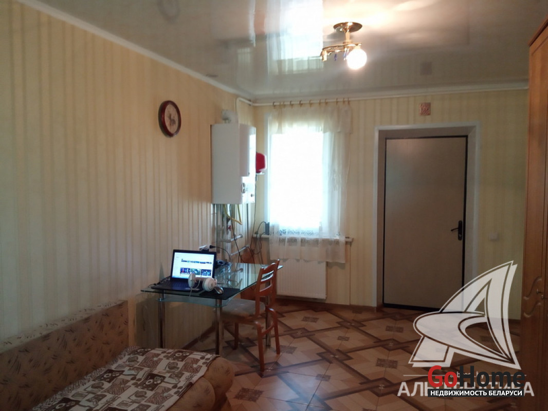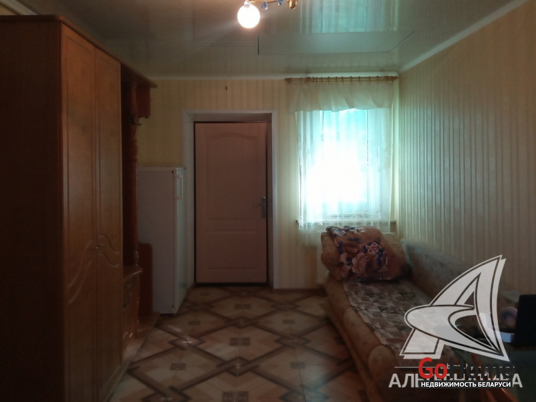 Квартира в блокированном жилом доме в Жабинковском р-не. 1961 г.п. 1 этаж. Общ.СНБ - 80,9 кв.м, общ.- 64,7 кв.м, жил.- 37,2 кв.м, кух.- 12,5 кв.м. 2 комнаты, высота потолка - 2,62 м.