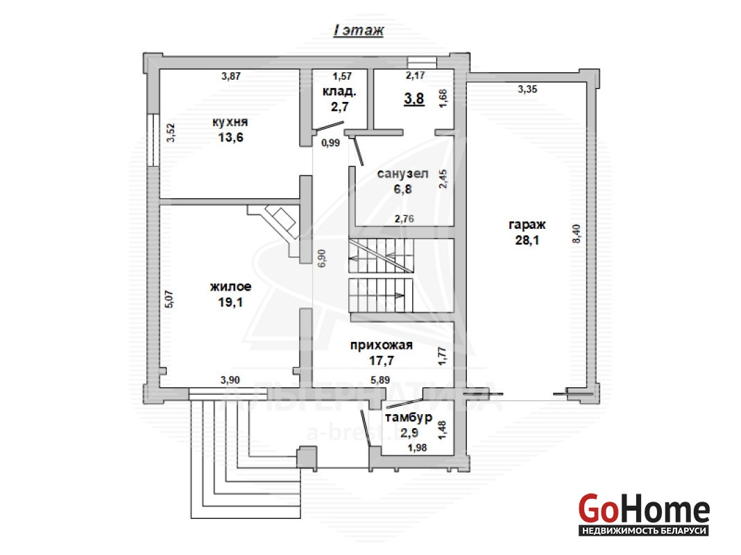 Жилой дом в г.Бресте. 2005 г.п. 2 этажа, цокольный этаж. Общ.СНБ - 261,0 кв.м, общ.- 163,6 кв.м, жил.- 101,1 кв.м, кух.- 13,6 кв.м. 6 комнат, высота потолка - 2,91 м.