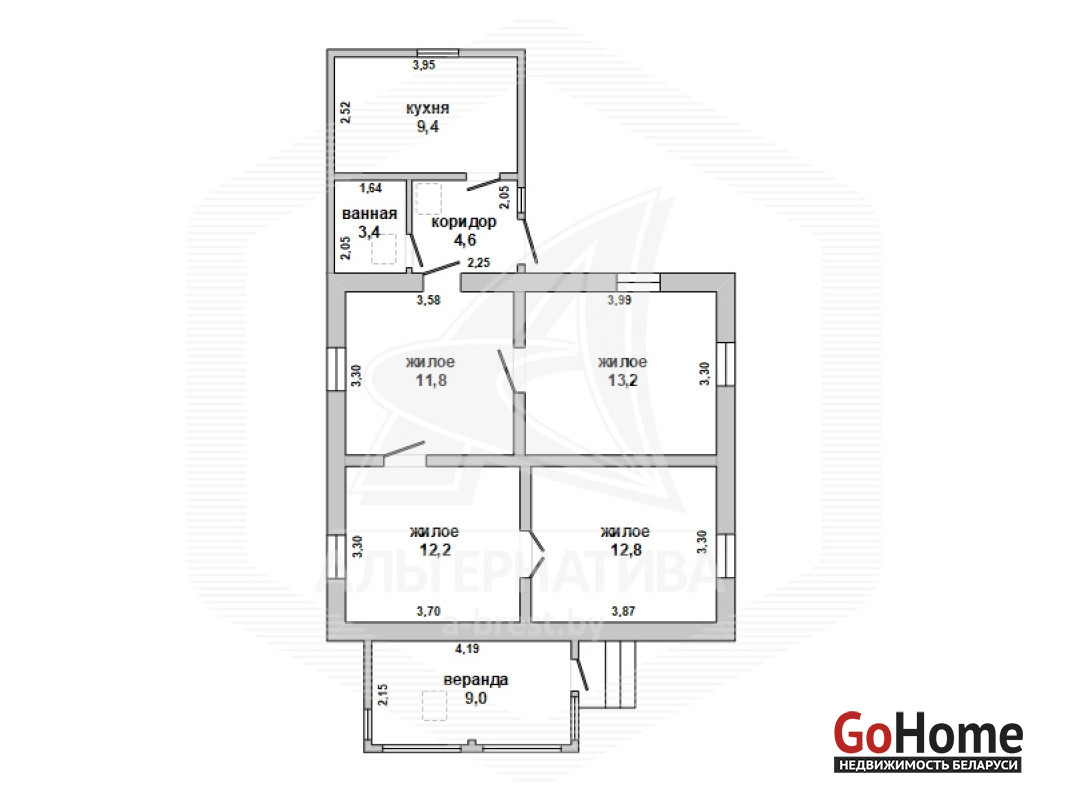 Жилой дом в г,Жабинке. 1963 г.п. 1 этаж. Общ.СНБ - 76,4 кв.м, общ.- 67,4 кв.м, жил.- 50,0 кв.м, кух.- 9,4 кв.м. 4 комнаты, высота потолка - 2,75 м.