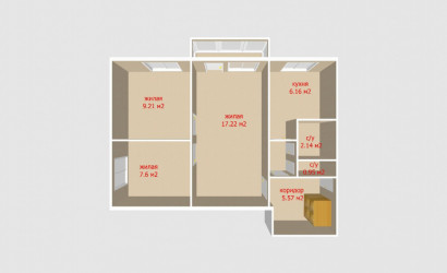 3-комнатная, 57.6/42.9/5.7 м2, Этаж 3 из 5