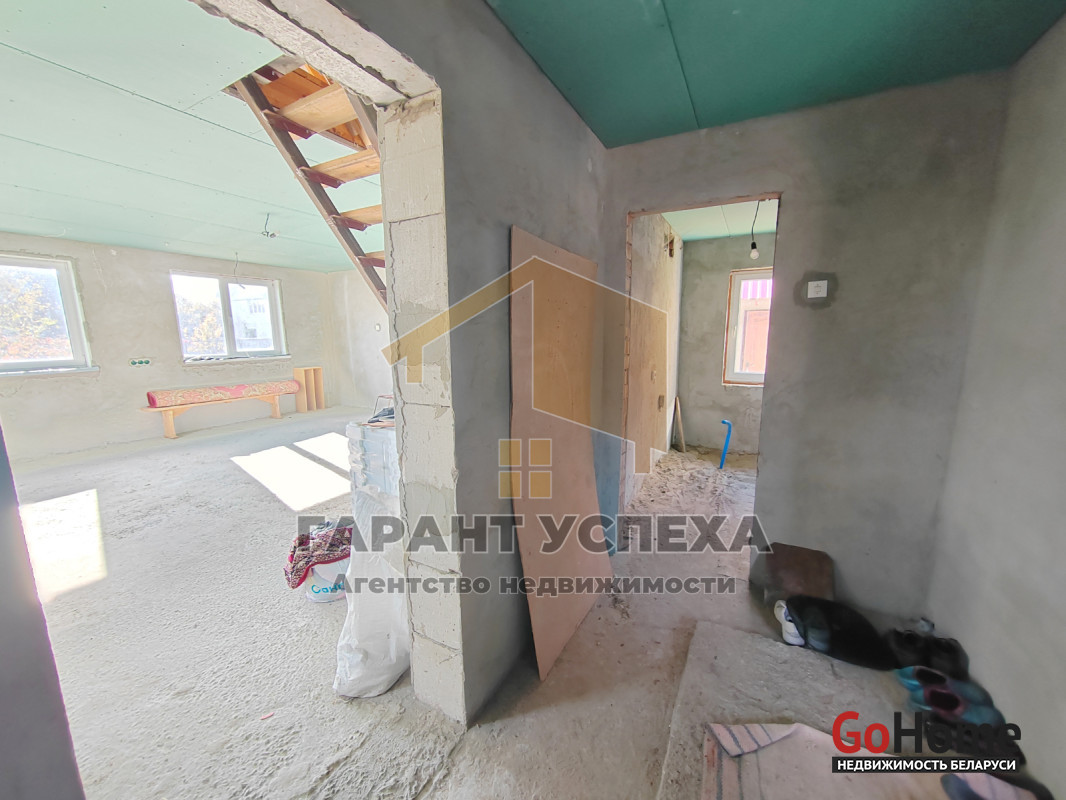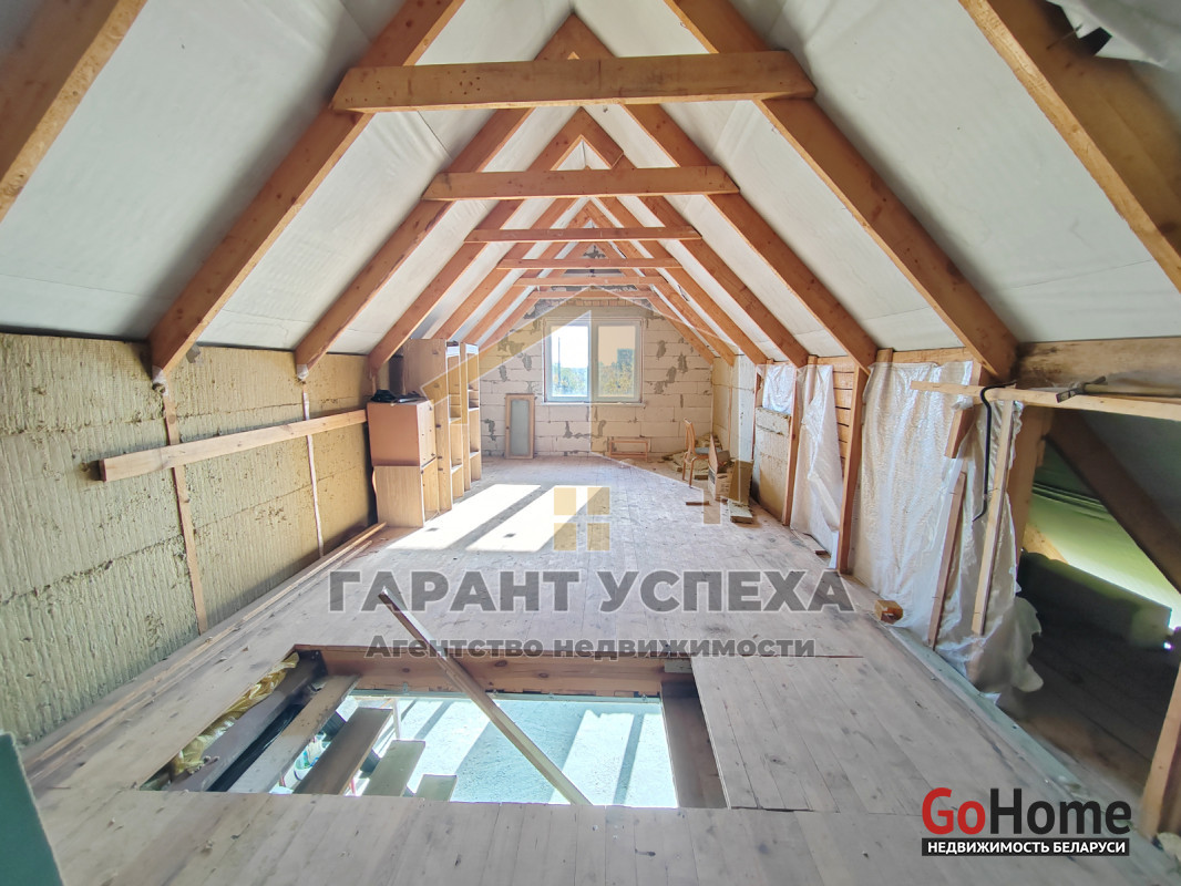 В доме установлены окна ПВХ, на первом этаже разведена проводка, стены оштукатурены, залита черновая стяжка, потолок подшит гипсокартоном. Мансардный этаж утеплён минватой. Кровля – металлочерепица. В дом заведена вода, установлен гидрофор.
