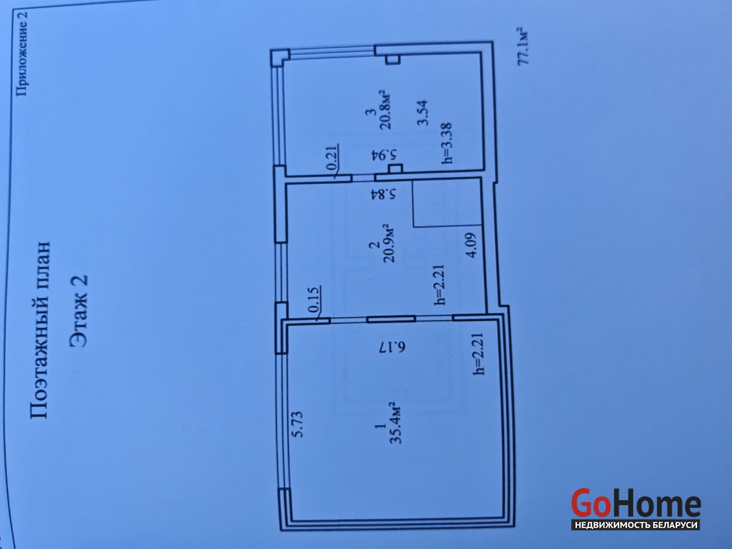 3-комнатная, 57.6/40.2/7.8 м2, Этаж 2 из 2