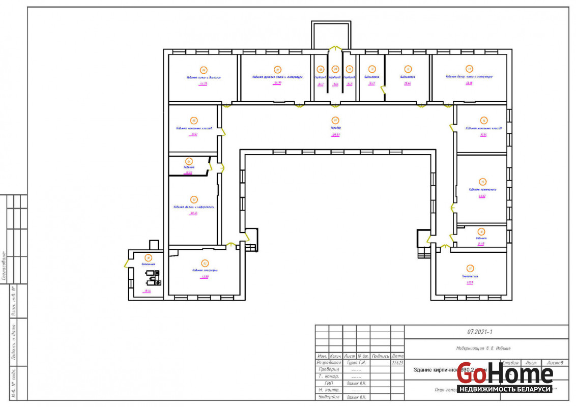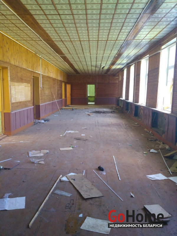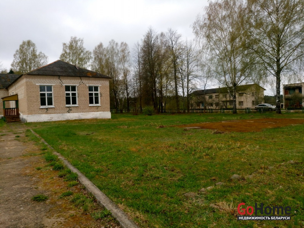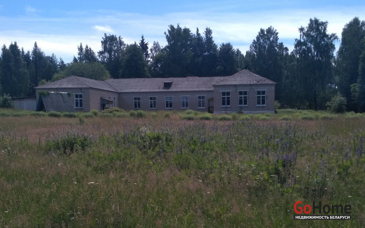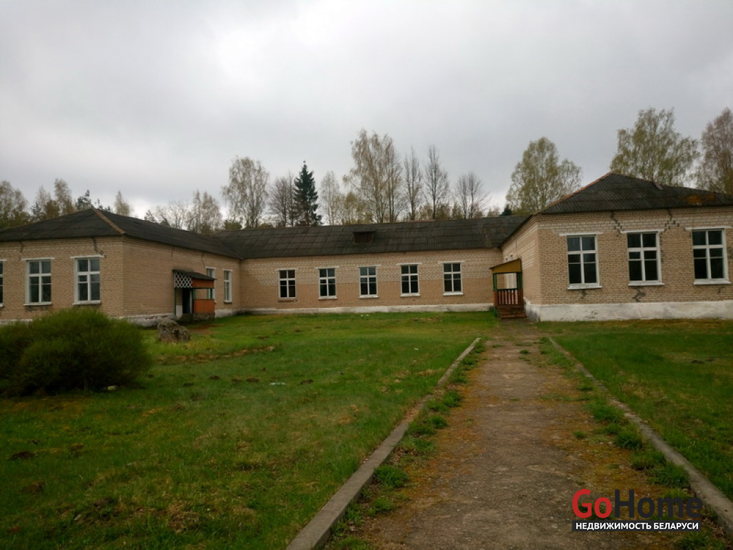 Четыре здания, Площадь зданий 1028 м², кирпичное 690,2 кв. м и + три деревянных дома 131,3 , 108,6 , 98,9 кв. м., Логойское направление, участок 3,3264 га, по адресу: Минская область, Логойский район, Задорьевский с/с, д. Избище, ул. Школьная, 2 70км от Минска.