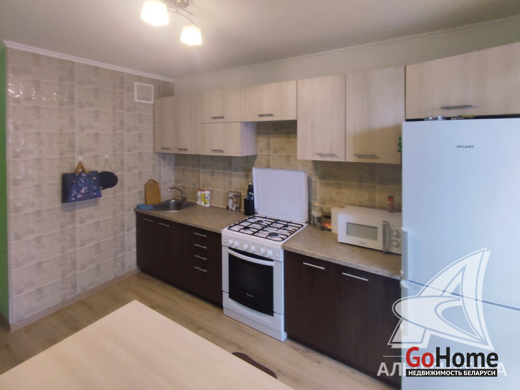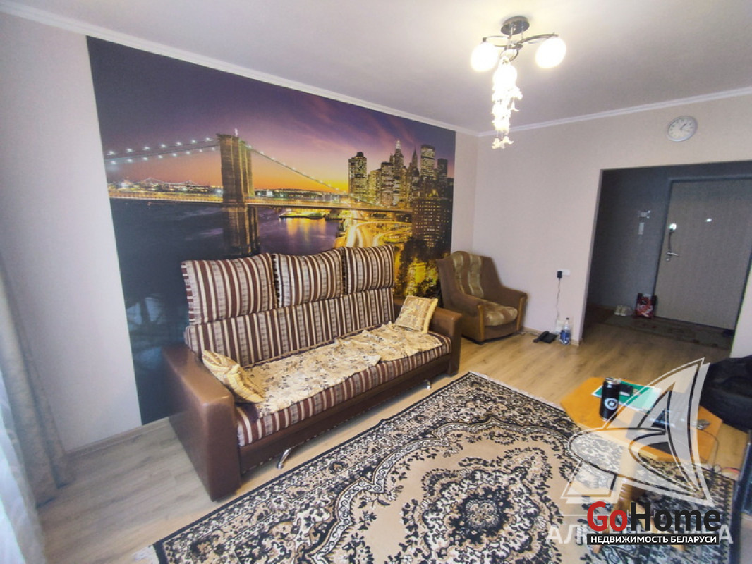 1-комнатная квартира, г. Брест, ул. Луцкая, 2016 г.п., 4 / 10 панель, 44,0 / 41,9 / 17,1 / 10,3, санузел раздельный, лоджия застеклена, стеклопакеты, входная дверь металлическая, потолки - снежка (2,63 м), полы - ламинат, стены - декоративная окраска и оклеены обоями, в санузле современная плитка, заменены сантехнические трубы, акриловая ванна, телефон, домофон. Кухонный гарнитур, шкаф-купе. Квартира с хорошим ремонтом. Один грузопассажирский лифт. Тамбур на две квартиры. Лот - 241182