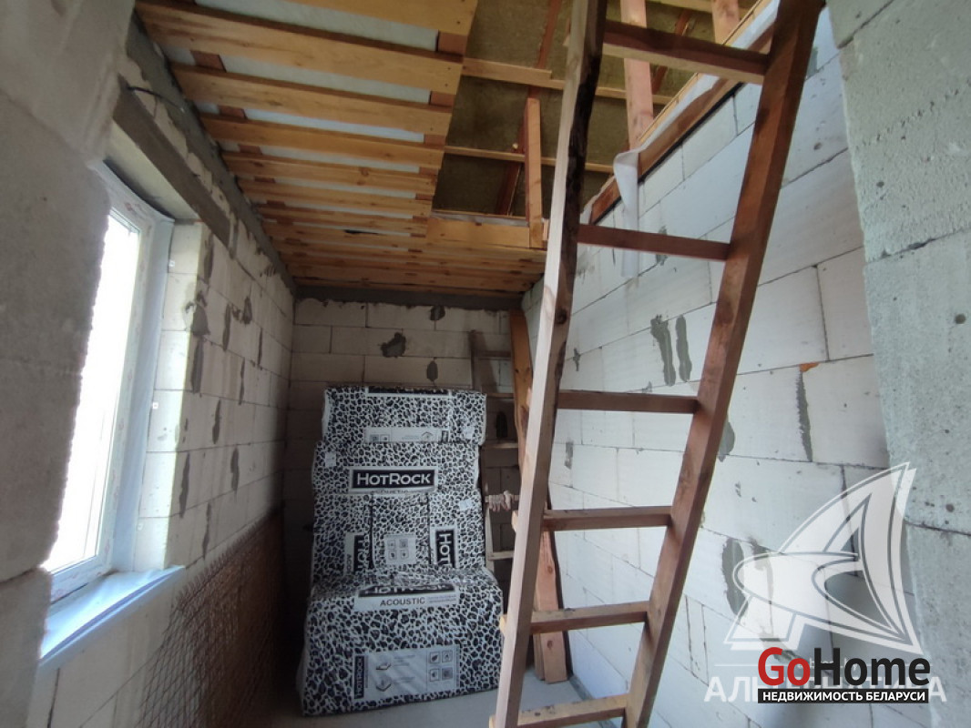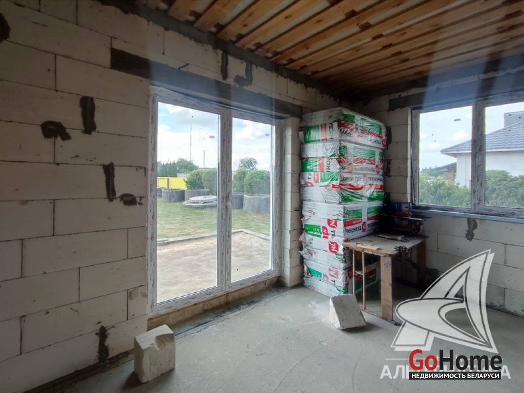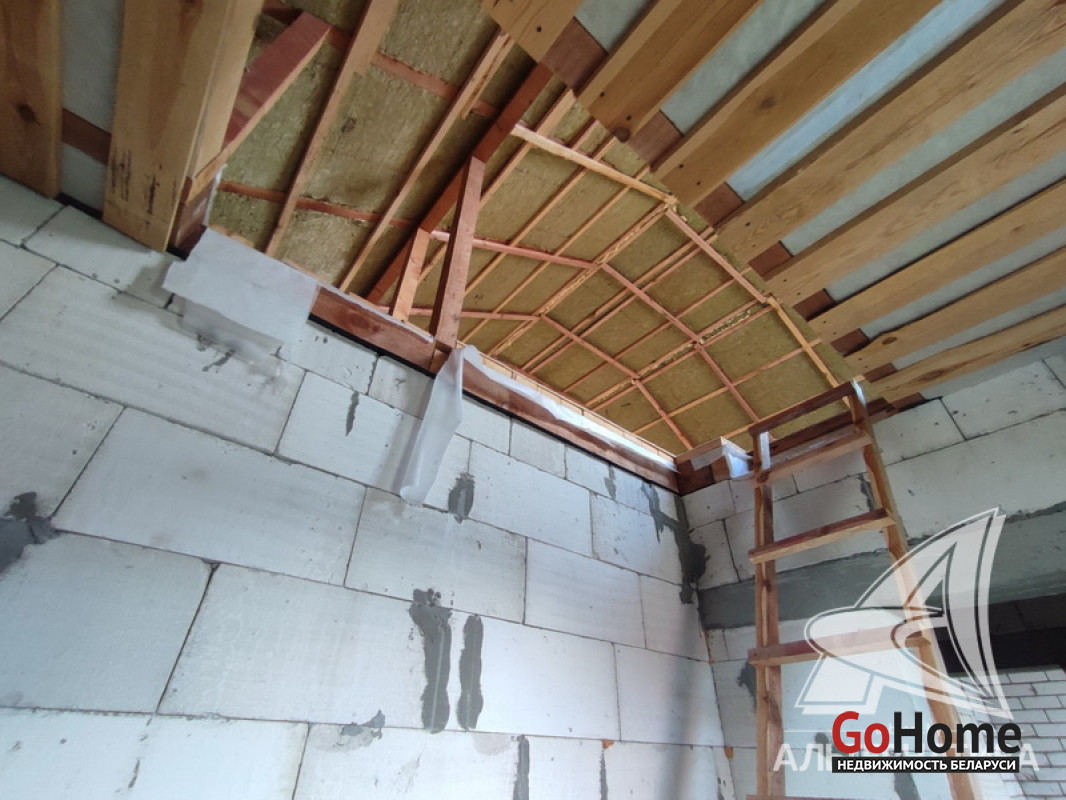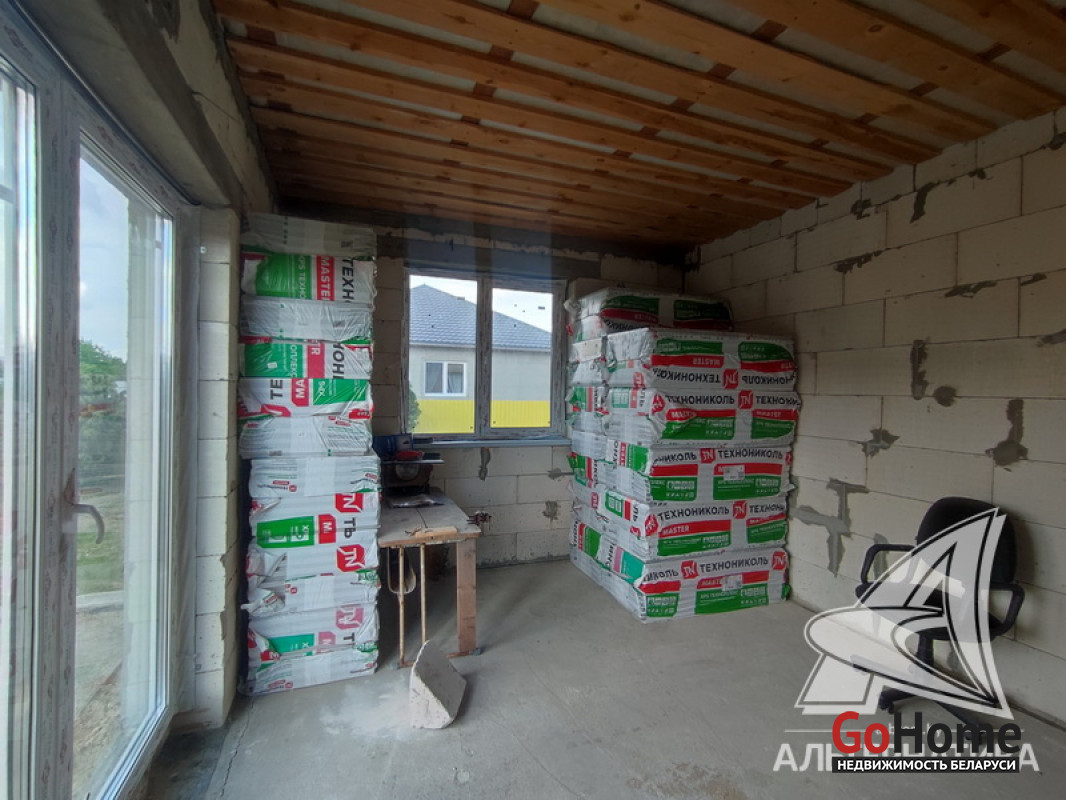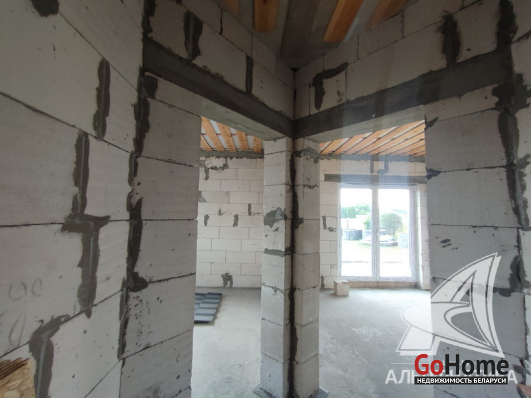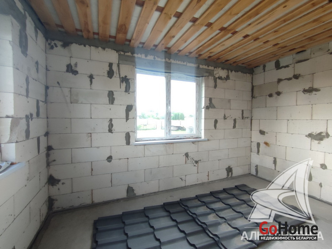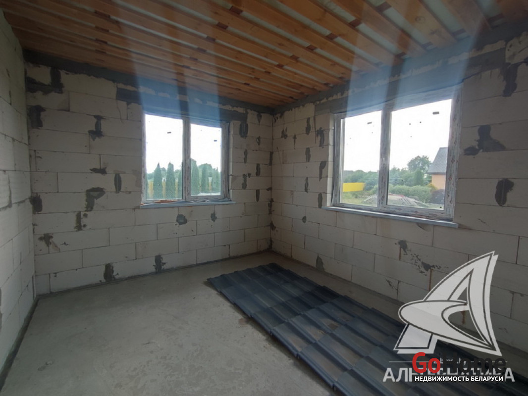 Коробка жилого дома в Жабинковском р-не. 2023 г.п. 1 этаж, мансарда. Общ.СНБ - 85,8 кв.м, общ.- 81,3 кв.м, жил.- 45,0 кв.м, кух.- 10,67 кв.м. 3 комнаты, высота потолка - 2,60 м.