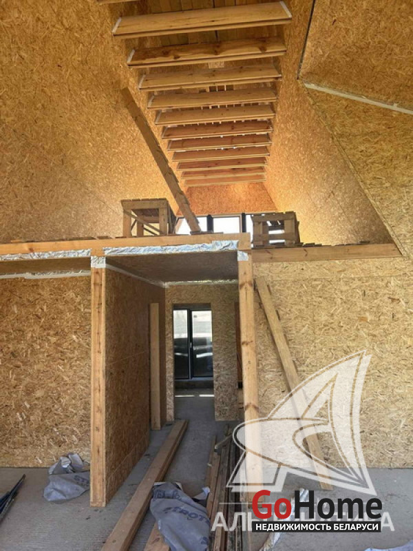 Коробка жилого дома в Пружанском р-не. 2024 г.п. 1 этаж, мансарда. Общ.СНБ - 220,0 кв.м, общ.- 200,0 кв.м, 4 комнаты.