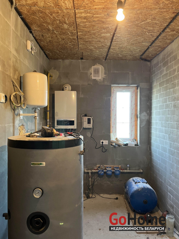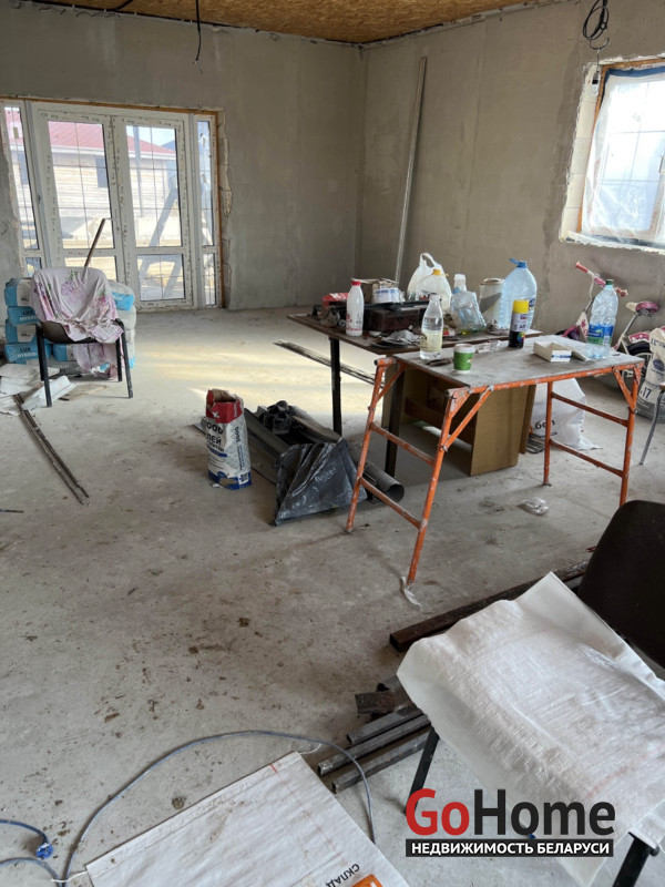 Собственник продает дом в коттеджной застройке в аг. Гатово, 6 км от Минска. В доме все коммуникации, разводка электрики, черновая отделка стен, теплые полы, просторный высокий мансардный этаж с четырьмя мансардными окнами, терраса, в доме предусмотрена комната отдыха с баней (со всеми необходимыми входами/выходами), во дворе летняя деревянная кухня 26 кв.м. Ровный подсыпанный участок 15 соток в частной собственности.