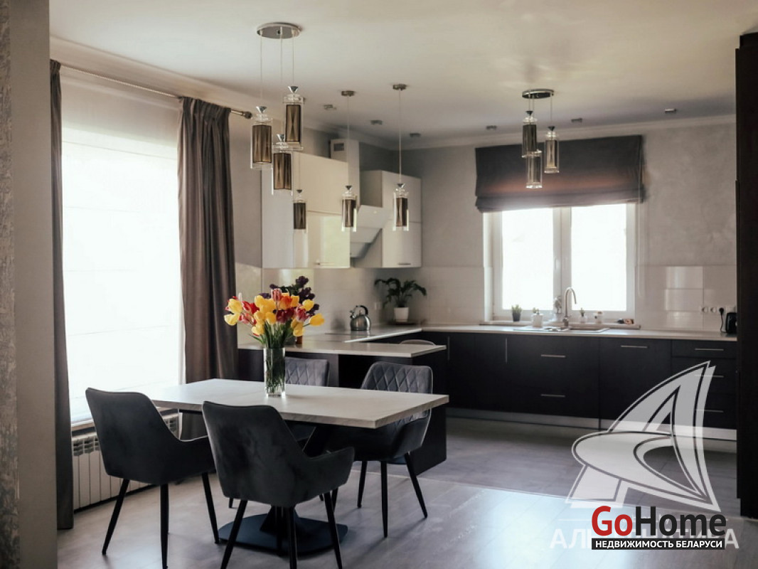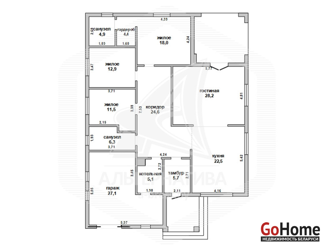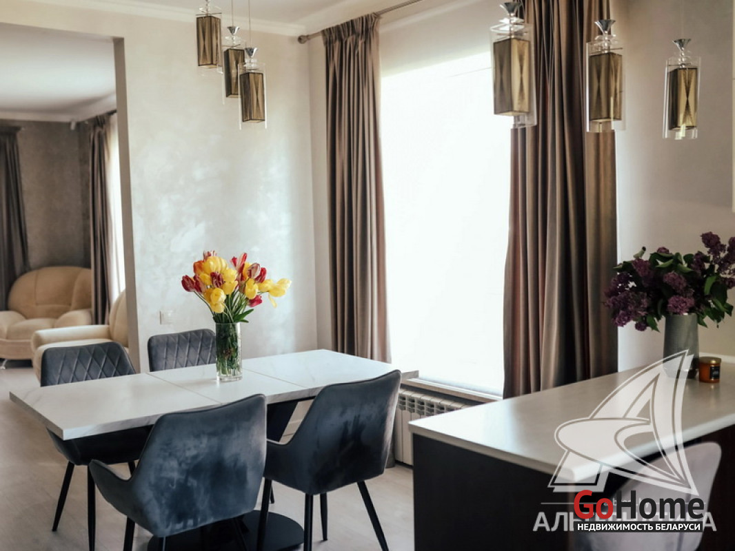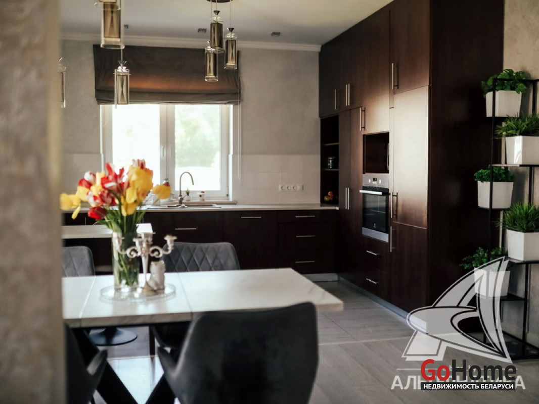 Жилой дом в г.Кобрине. 2017 г.п. 1 этаж. Общ.СНБ - 177,1 кв.м, общ.- 144,7 кв.м, жил.- 71,2 кв.м, кух.- 22,5 кв.м. 4 комнаты, высота потолка - 2,70 м.