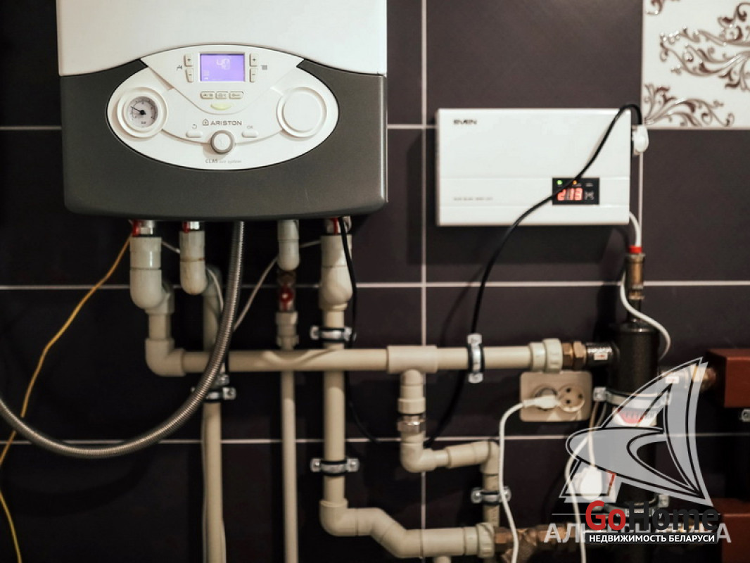 Коммуникации: отопление - газовый котел, газ - централизованный (в доме), водоснабжение - централизованный водопровод, электричество - централизованное, канализация - централизованная.