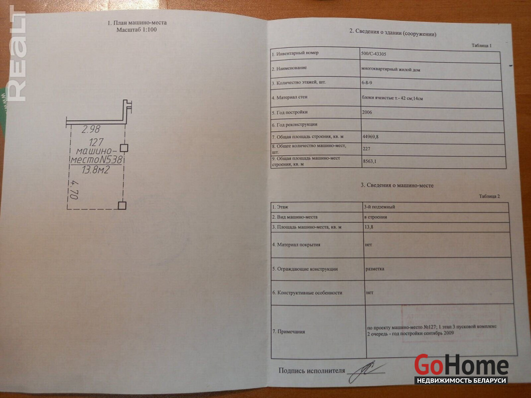 Продается машиноместо в крытом паркинге. Охрана, въезд-выезд по магнитным картам. Место находится на третьем этаже паркинга, отрицательной температуры зимой не бывает. Есть выход из паркинга на улицу Притыцкого и Тимошенко. Коммуналка 30р в месяц.
