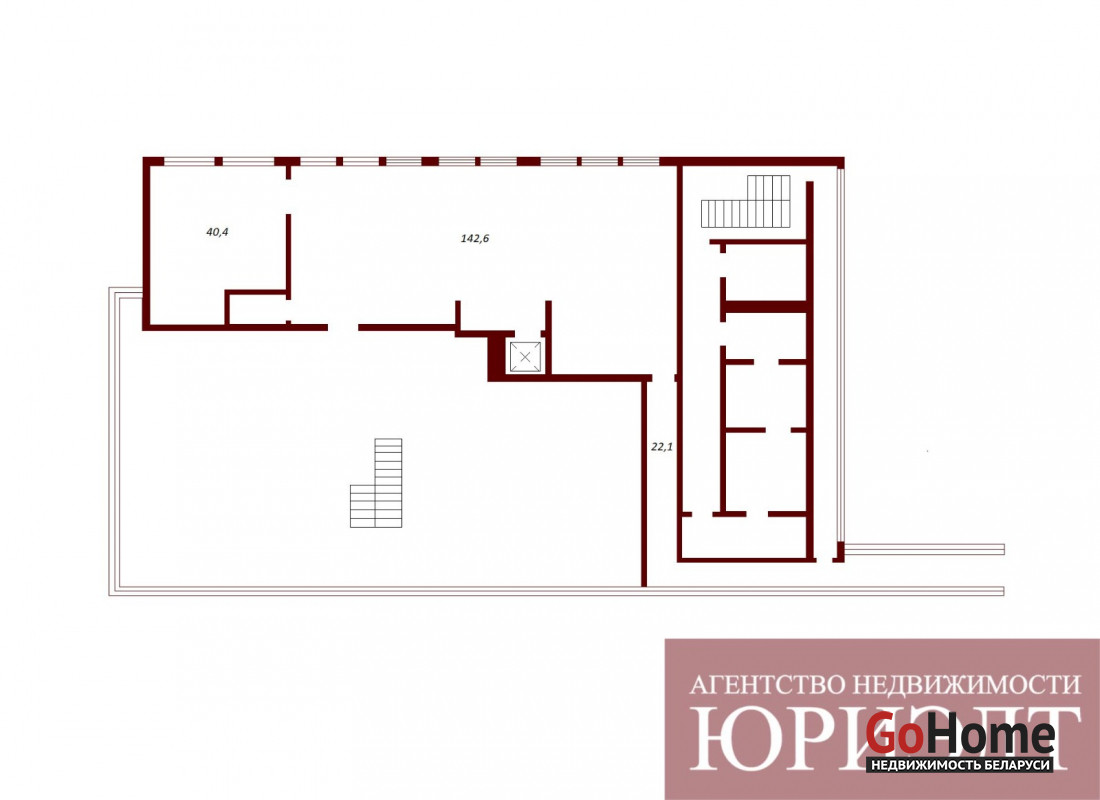 На 1-ом этаже расположен склад общей площадью 545,8 кв.м. и 104,7 кв.м.