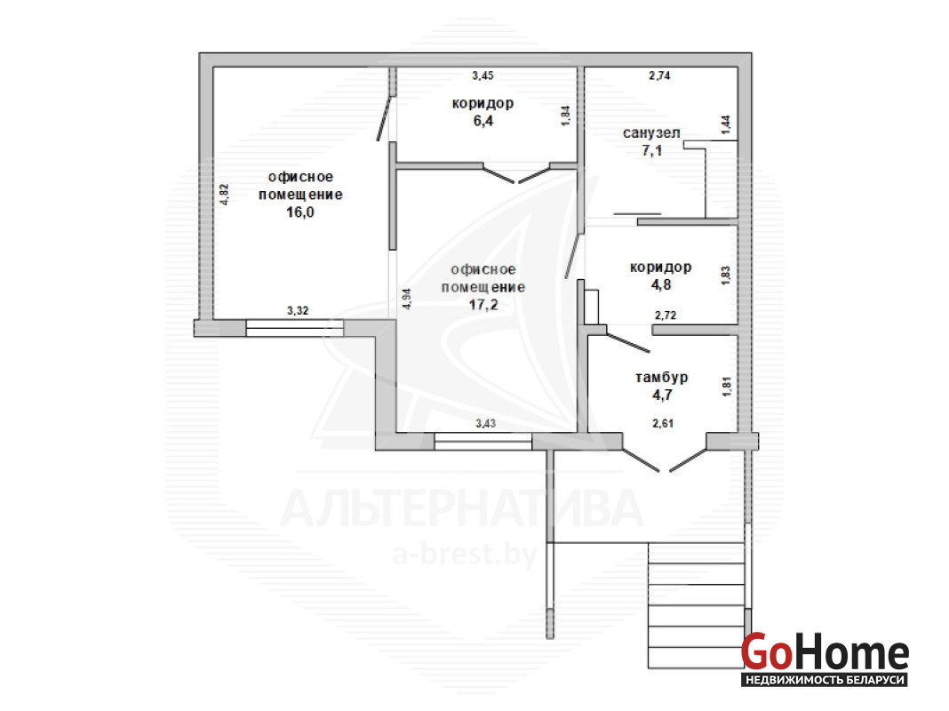 Административно - торговое помещение в собственность в микрорайоне Вулька города Бреста общей площадью 56,2 кв.м. Изолированное помещение с отдельным входом расположено на 1 (первом) этаже жилого дома 2024 года постройки. Состоит из 2 (двух) проходных помещений (17,2 + 16 кв.м), подсобного помещения (6,4 кв.м), коридора и тамбура. Отдельный санузел (7,1 кв.м). Технические характеристики помещения: полы - плитка, стены оштукатурены, окрашены. Оборудована приточно - вытяжная вентиляция, пожарная сигнализация, аварийное освещение, бойлер на горячую воду, проведено оптоволокно. Установлены индивидуальные приборы учета электричества и водоснабжения. При входе оборудован подъемный механизм для инвалидов (до 400 кг). Рассматриваются все варианты. Лот - 241384