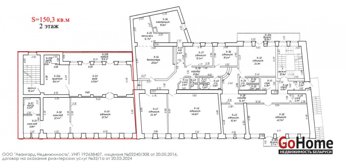 офисный блок на 2 этаже общей площадью 150,3 кв.м;