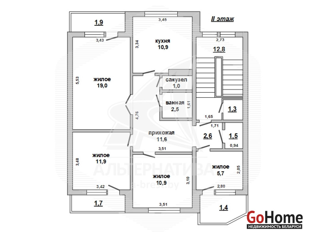 Квартира в блокированном доме в Каменецком р-не. 2 этажа. Общ.СНБ - 160,0 кв.м, общ.- 105,5 кв.м, жил.- 48,7 кв.м, 4 комнаты, высота потолка - 2,70 м.