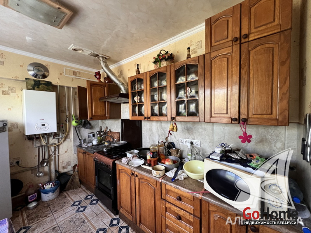 Коммуникации: отопление - газовый котел и печь, газ - централизованный (в доме), водоснабжение - централизованный водопровод, электричество - централизованное, канализация - централизованная.