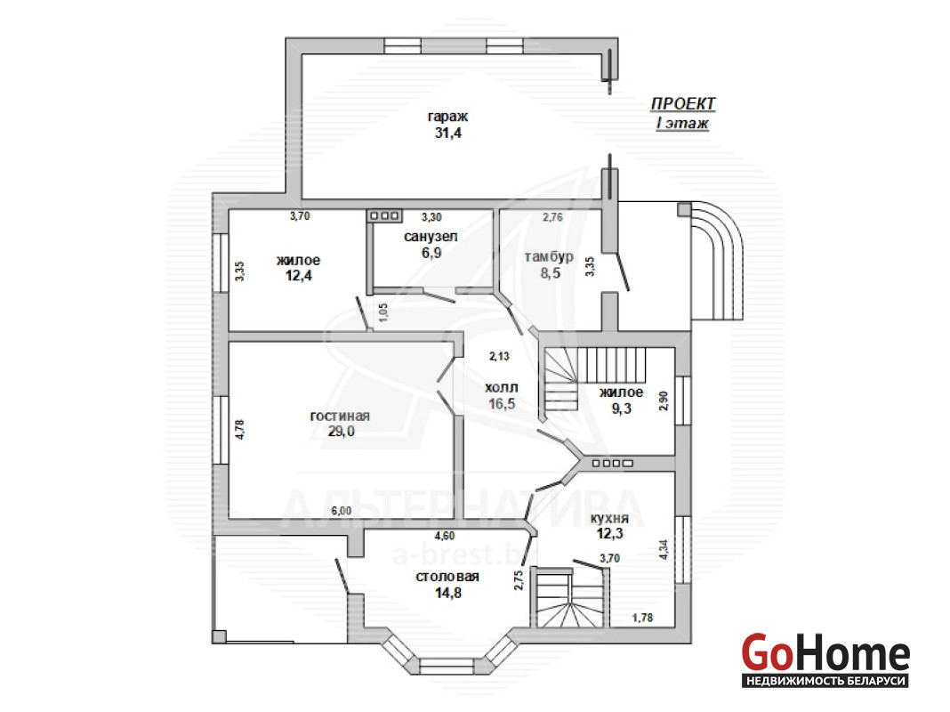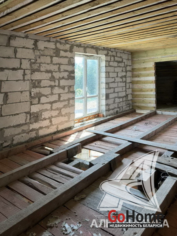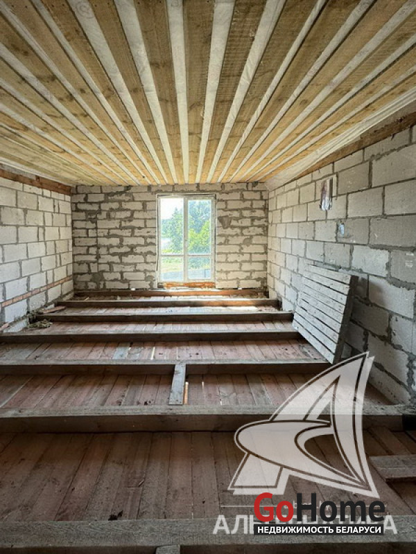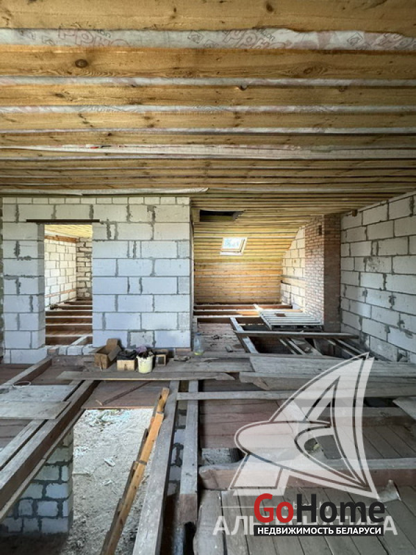 Коробка жилого дома в Брестском р-не. 1 этаж, мансарда. Общ.- 405,37 кв.м, жил.- 139,58 кв.м, кух.- 12,35 кв.м. 6 комнат.