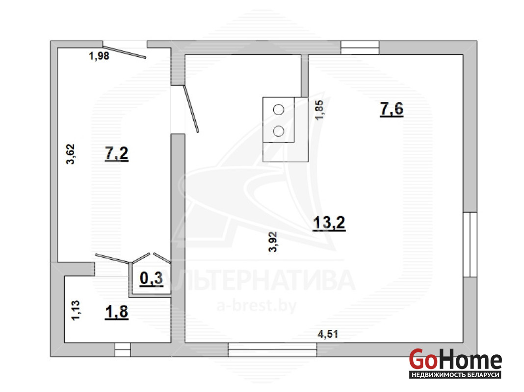 Садовый домик в Брестском р-не. 2017 г.п. 1 этаж. Общ.- 30,1 кв.м. 1 комната.
