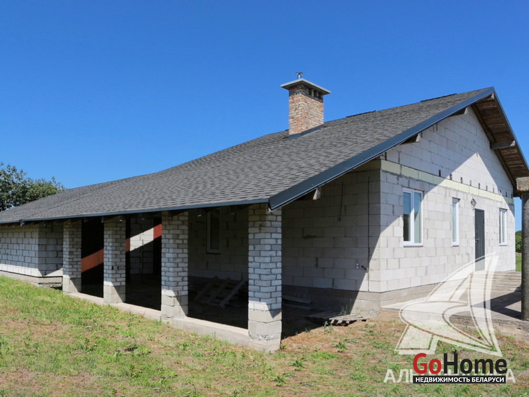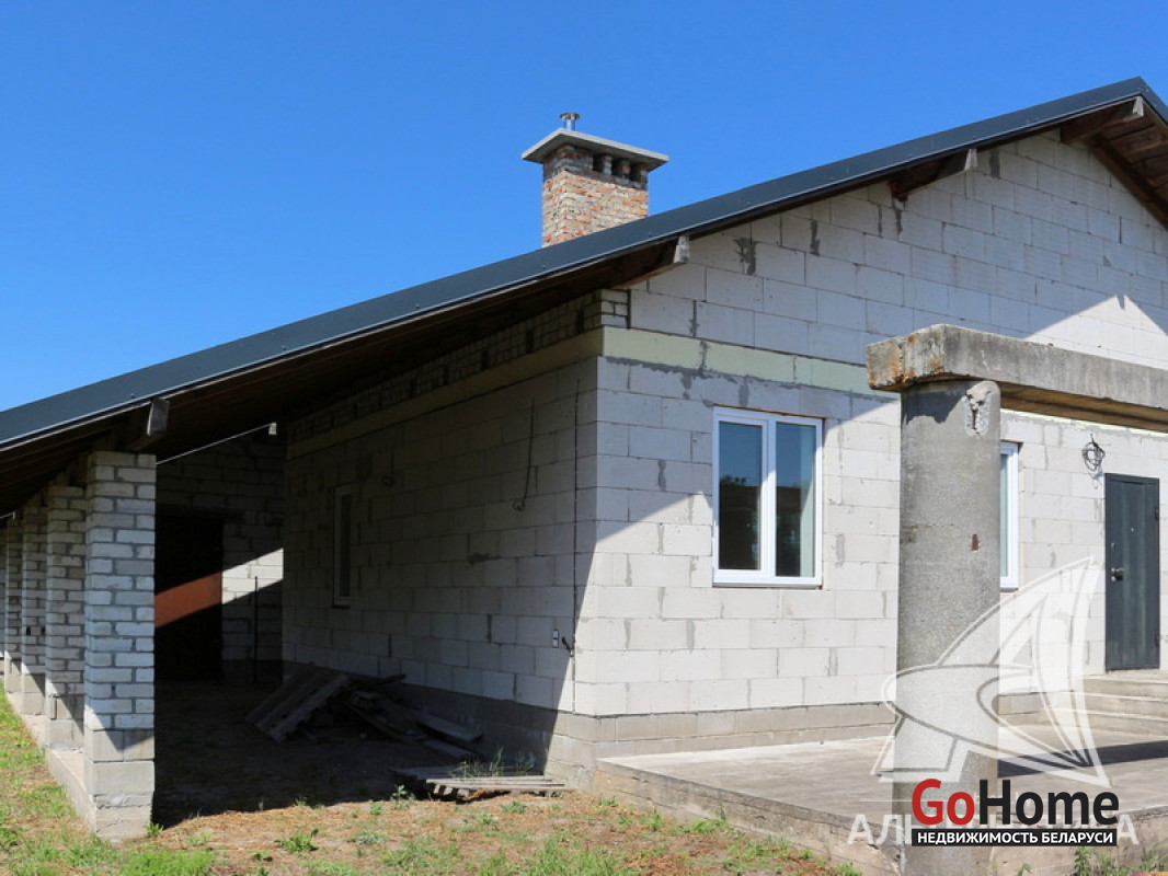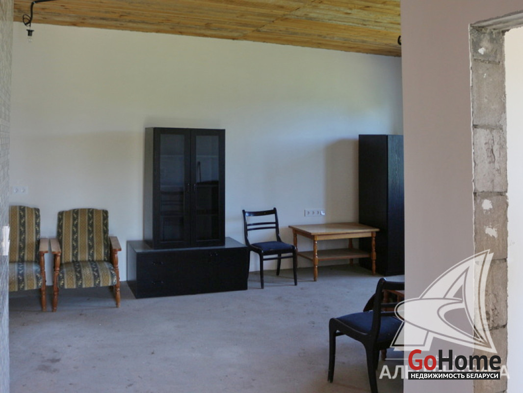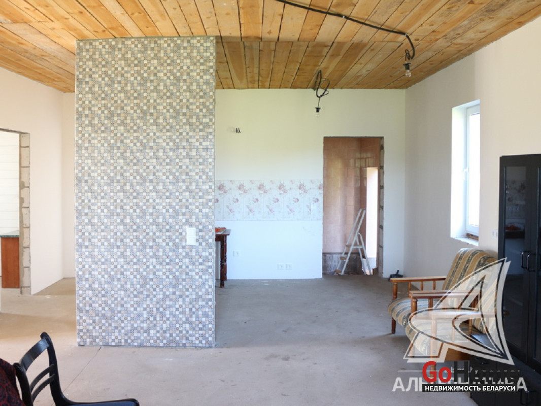 Дом под чистовую отделку в Каменецком р-не. 2024 г.п. 1 этаж. Общ.СНБ - 98,1 кв.м, общ.- 77,5 кв.м, жил.- 50,2 кв.м, кух.~ 12,0 кв.м. 3 комнаты, высота потолка - 2,83 м.