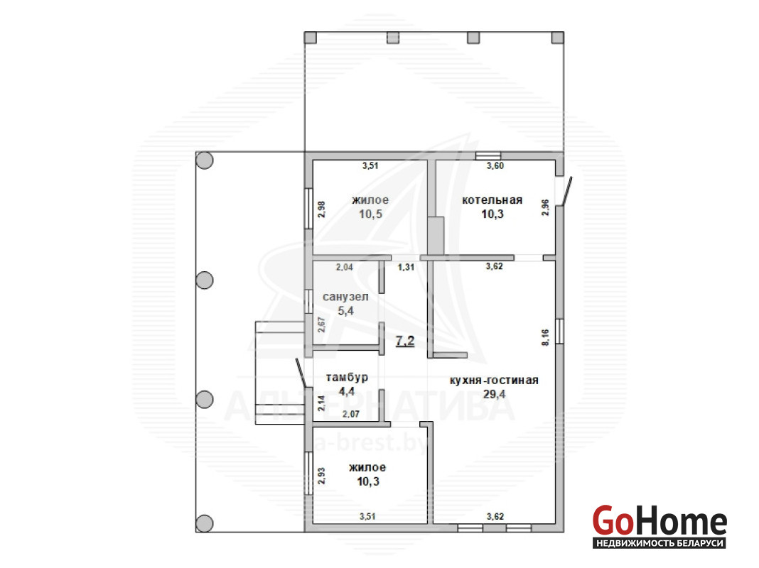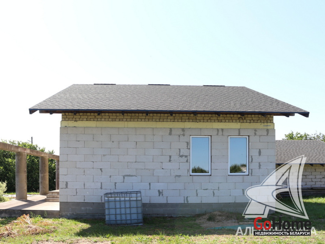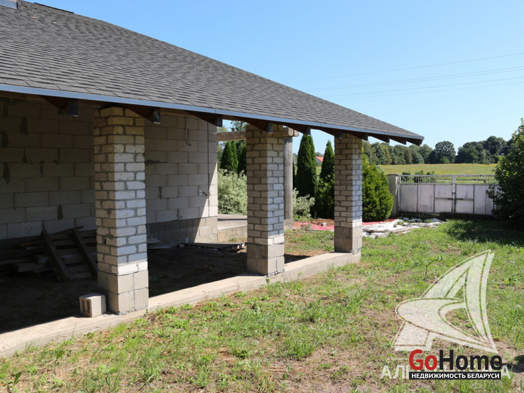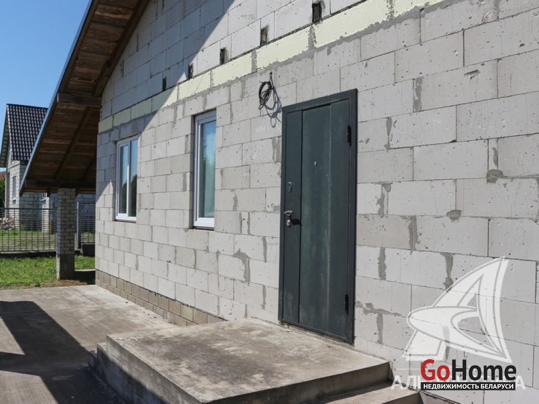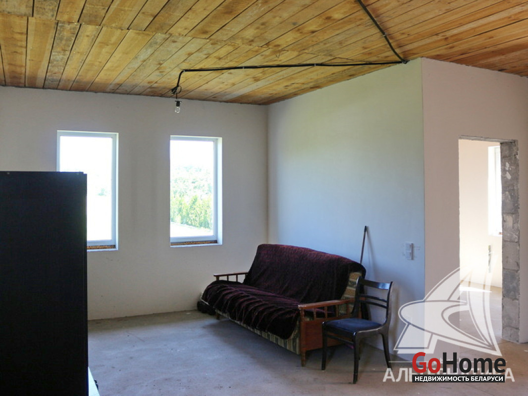 Дом под чистовую отделку в Каменецком р-не. 2024 г.п. 1 этаж. Общ.СНБ - 98,1 кв.м, общ.- 77,5 кв.м, жил.- 50,2 кв.м, кух.~ 12,0 кв.м. 3 комнаты, высота потолка - 2,83 м.