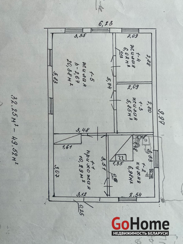 Одноэтажный дом 1962 года постройки, площадь дома 49,52 м2, жилая площадь 32,25м2 количество комнат 5.
