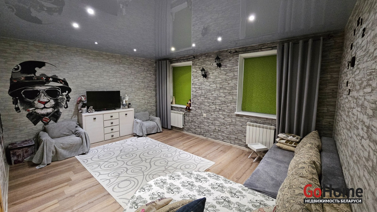 Обновлялась крыша, полы, внутренняя обшивка дома, отопительная и канализационная системы полностью. В квартире сделан современный ремонт, натяжные потолки, теплые полы, на кухне и коридоре плитка, в комнате ламинат. В кухне есть небольшой погреб. Санузел совмещенный, облицован плиткой. Территория ограждена забором, ворота и калитка – металлопрофиль. По периметру высажен дикий виноград, что делает внутренний двор три сезона непросматриваемым.