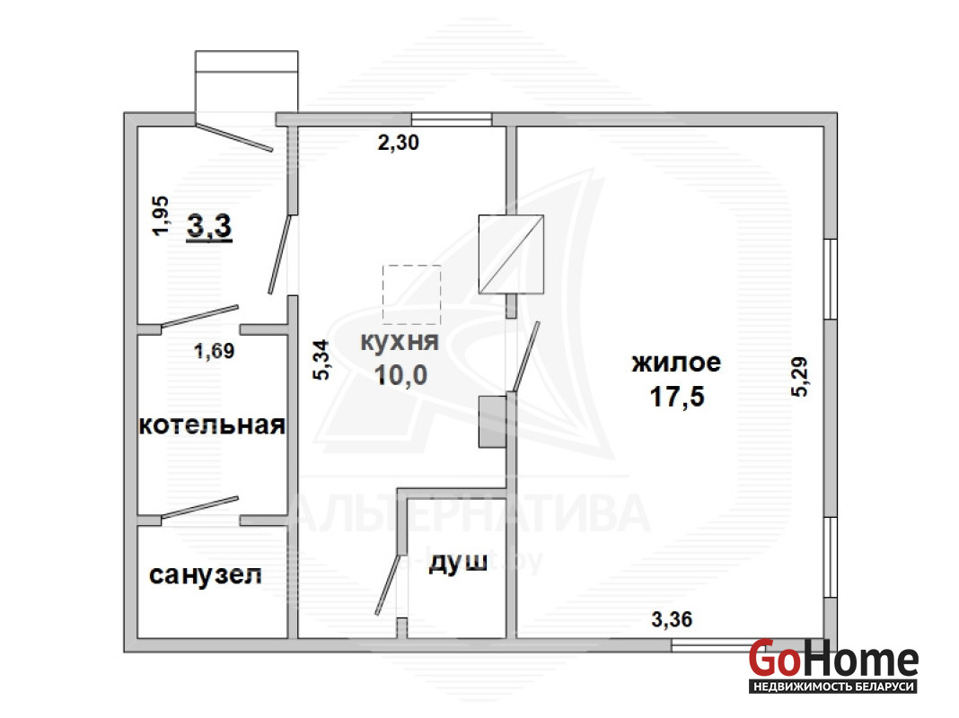 Жилой дом в Каменецком р-не. 1980 г.п. 1 этаж. Общ.СНБ - 36,3 кв.м, общ.- 27,5 кв.м, жил.- 17,5 кв.м, кух.- 10,0 кв.м. 1 комната, высота потолка - 2,5 м.