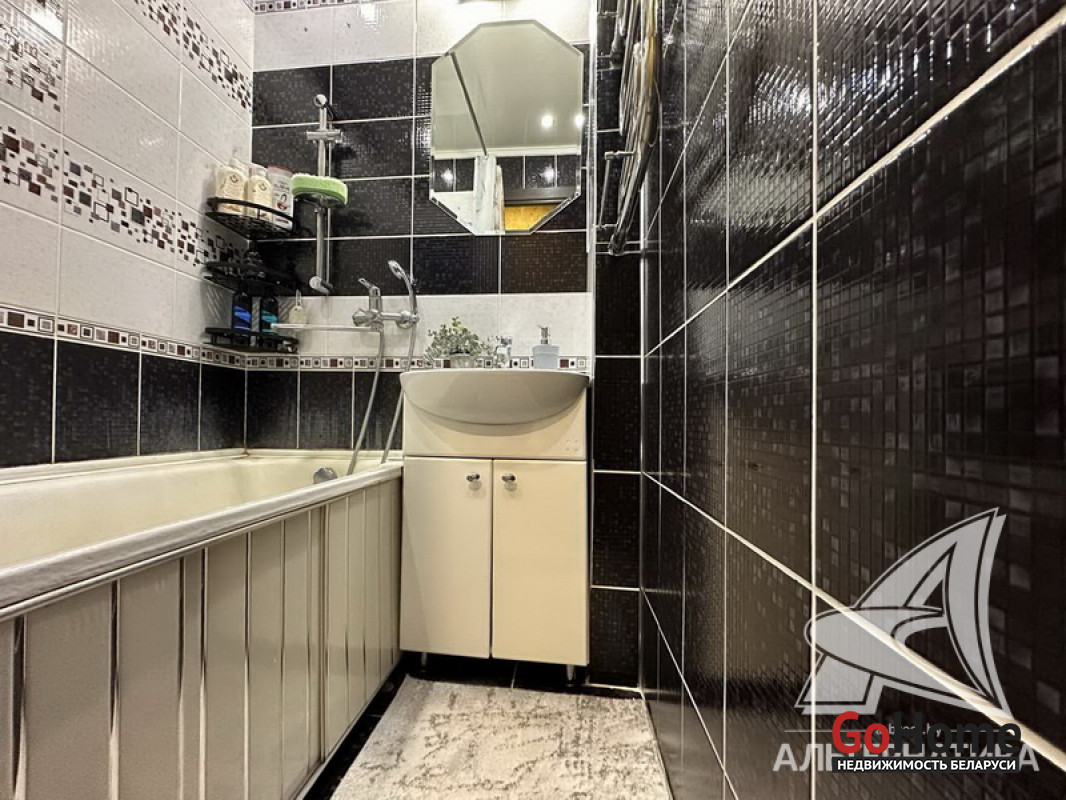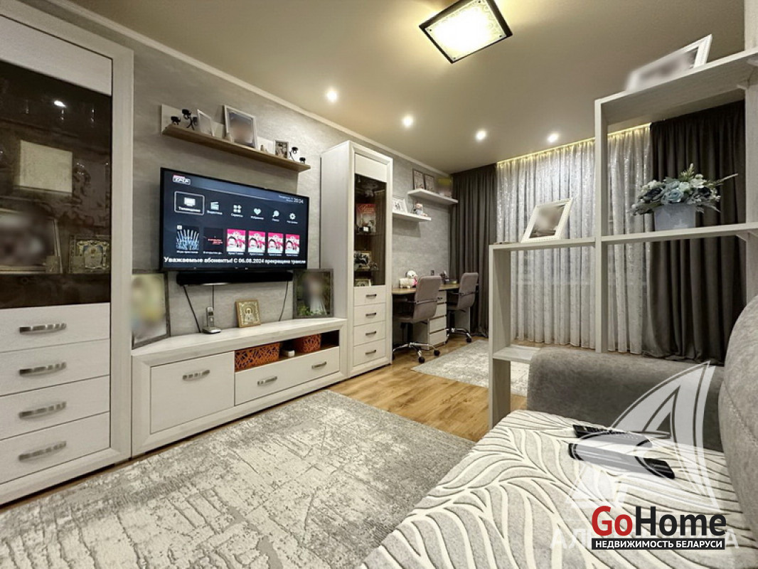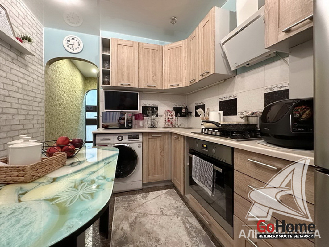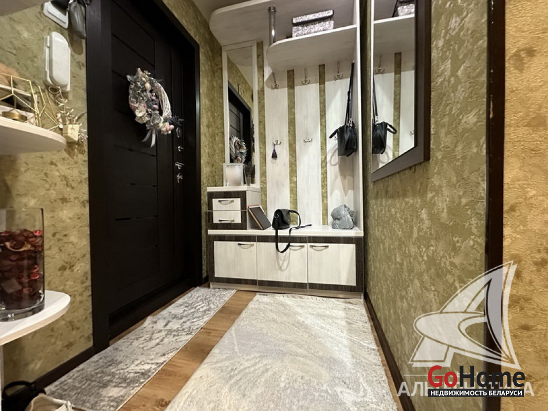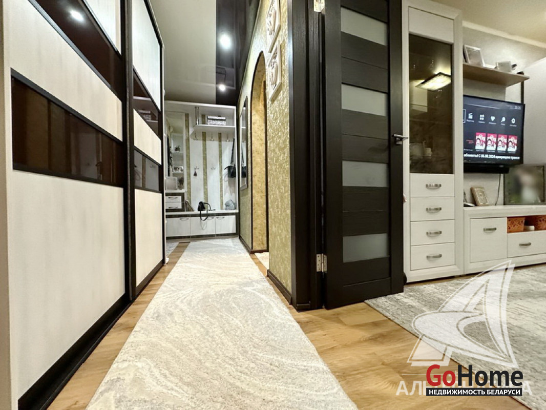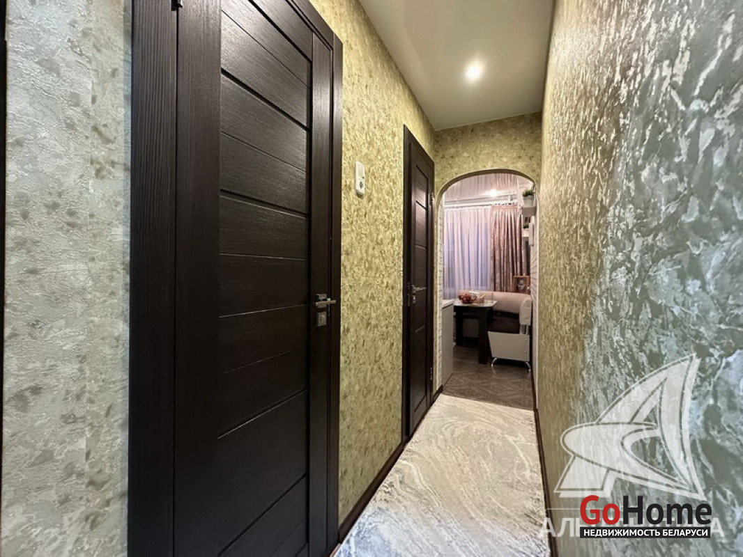 1-комнатная квартира, г. Брест, ул. Дубровская, 1991 г.п., 3 / 5 панель, 36,9 / 36,9 / 17,0 / 7,3, санузел раздельный, двухкамерные стеклопакеты, межкомнатные двери - шпон, входная дверь металлическая, натяжные потолки (глянец) - 2,50 м., стены оклеены обоями, в санузле современная плитка, заменена сантехника, заменен полотенцесушитель, чугунная ванна, кондиционер, проведена новая электропроводка, телефон, домофон. Кухонный гарнитур, варочная поверхность, духовой шкаф, вытяжка, тумба и умывальник (в санузле), шкаф-купе (в прихожей), гардеробная. Остальная мебель по договоренности. Квартира с хорошим ремонтом. Все окна выходят во двор. Чистый подъезд. Лот - 241773