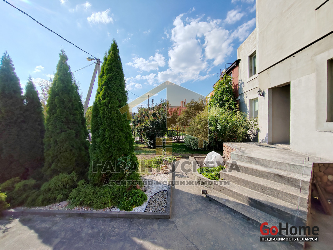 Территория рядом с домом имеет бетонное покрытие, а дорожки по участку уложены тротуарной плиткой. На участке высажены декоративные растения, плодовые деревья и кустарники. С тыльной стороны дома имеется большая зона для огородничества.