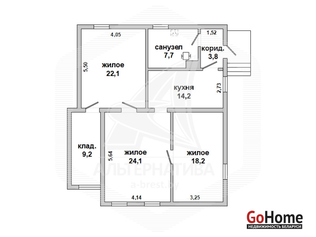 Квартира в блокированном жилом доме в Брестском р-не. 1963 г.п. 1 этаж. Общ.СНБ - 99,3 кв.м, общ.- 99,3 кв.м, жил.- 64,4 кв.м, кух.- 14,2 кв.м. 3 комнаты.