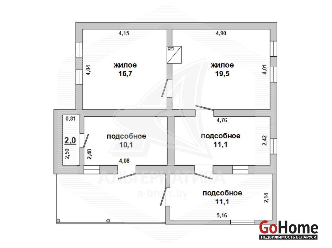 Жилой дом в Брестском р-не. 2023 г.п. 1 этаж. Общ.СНБ - 71,0 кв.м, жил.- 36,2 кв.м, кух. - 11,6 кв.м. 2 комнаты, высота потолка - 2,80 м.