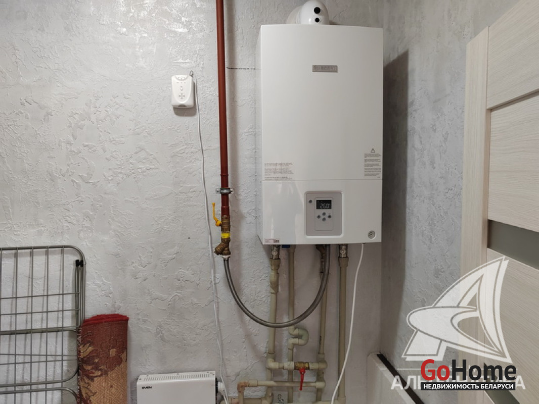 Коммуникации: отопление - газовый котел, газ - централизованный (в доме), водоснабжение - скважина и гидрофор, электричество - централизованное, канализация - автономная.