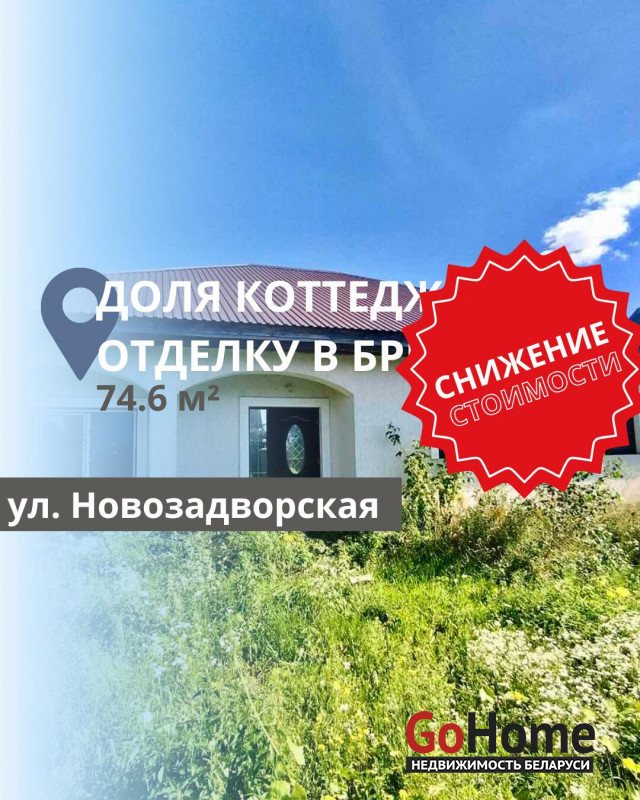 В продаже 1/2 коттеджа по ул. Новозадворская. Дом и земельный участок разделены официально. Общая площадь дома - 159.3. Общая площадь доли - 74.6 м2. Состоит из 2 спальных комнат, кухни совмещенной с гостиной, просторной прихожей комнатой (12.2 м2), раздельного санузла. Под отделку, черновая стяжка. Установлены окна ПВХ, подоконники из мрамора. Коммуникации: газ, вода, свет - заведены в дом; канализация - есть; отопление - отсутствует. Площадь участка - 11.4 соток. Участок огорожен по периметру, установлены автоматические ворота. На участке размещена хозпостройка с большим навесом. Возможен обмен на квартиру в доплатой. Хорошее месторасположение, недалеко от дома остановка общественного транспорта.