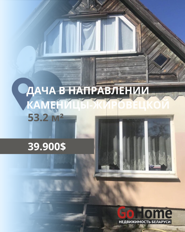 Дача в направлении Каменицы Жировецкой в одном километре от города. Мансардный дом из газосиликатных блоков и кирпича, площадью 53,2 м2. На участке также расположены летняя кухня (23 м2), баня (40 м2), навес, сарай, гараж. Коммуникации: вода скважина, газ рядом, электричество в доме. Участок 5,23 сотки, огорожен по периметру.