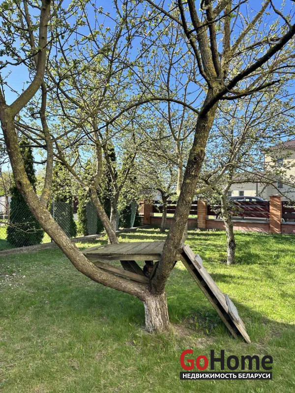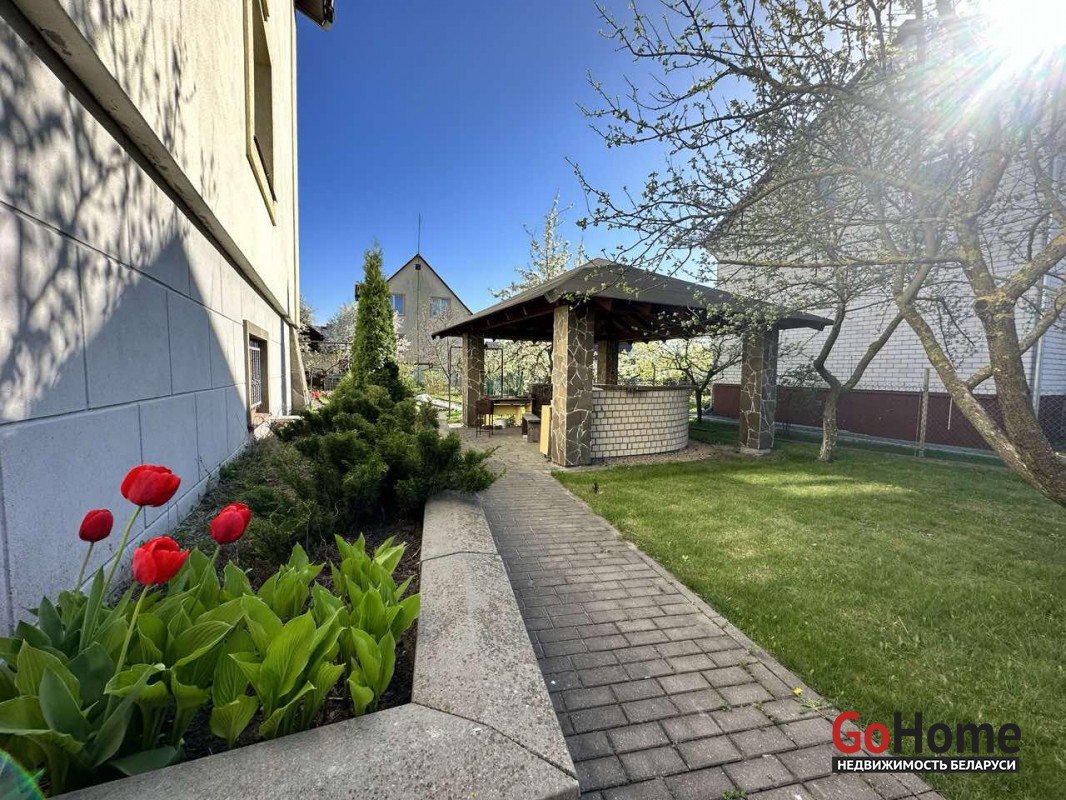 В цокольном этаже расположены дополнительные помещения: бильярдная с камином, арт-студия с отдельным входом и котельная-постирочная. На территории участка установлена просторная беседка из кирпича с мягкой кровлей. Во дворе имеется огород и плодово-ягодные насаждения.