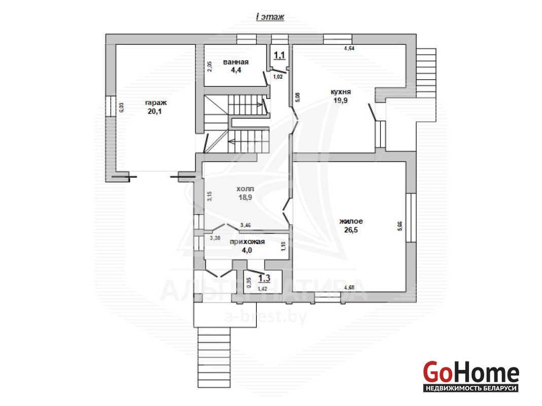 Жилой дом в г.Бресте. 1999 г.п. 2 этажа. Общ.СНБ - 269,2 кв.м, общ.- 172,2 кв.м, жил.- 91,1 кв.м, кух.- 19,9 кв.м. 5 комнат, высота потолка - 2,57 м.