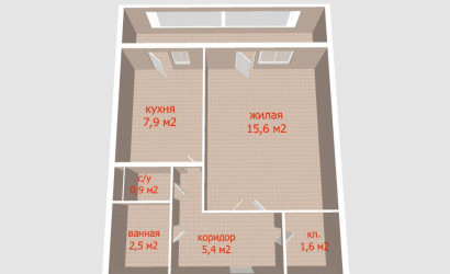 1-комнатная, 34.59/17.9/7.4 м2, Этаж 4 из 5